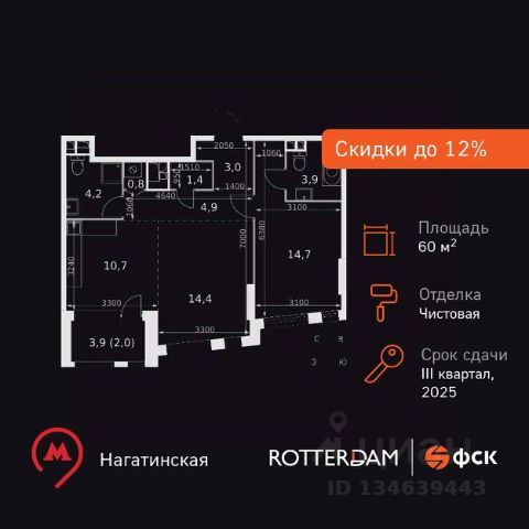 Прямая продажа от застройщика! Жилой Комплекс бизнес-класса. Продаётся 2-к квартира номер 15 общей площадью 46.4 кв.м. на 4-м этаже 29 этажного здания. Отделка Whitebox. Цена с учётом скидки. Особенности квартиры: - Мастер-зона с гардеробной. Просторное место для отдыха и удобного хранения вещей. - Линейная планировка - максимальная функциональность и удобство. - Линейная планировка - максимальная функциональность и удобство. - Увеличенное количество окон - дополнительное освещение и свежий воздух. - Постирочная - организуйте пространство для стирки и сушки вещей. - Гардеробная - удобство для хранения и организации вещей. - Ниша под шкаф - компактное и удобное место для вещей. - Лоджия - уютное место для отдыха и тишины. Квартира с предчистовой отделкой (White box). Вам не придется заниматься черновыми и трудоёмкими работы, а чистовую отделку и дизайн - сделайте на свой вкус. Информация о комплексе: В ЖК Роттердам отличное расположение, которое позволит вам выбирать свой сегодняшняшний маршрут и транспорт исходя из настроения, целей и погоды. Отсюда удобно добираться в центр как на метро станция находится в пешей доступности, так и на автомобиле. Варшавское шоссе связывает жилой комплекс с ТТК, а через Люсиновскую и Мытную улицы с Садовым кольцом. В качестве альтернативного маршрута можно использовать Нагатинскую набережную: дорога вдоль Москва-реки приведет к Кремлю и Павелецкому вокзалу. Для неспешной поездки предусмотрены трамвайные маршруты, а в теплое время года веломаршруты вдоль реки. Транспортная доступность: Всего в 5 минутах пешком до метро Нагатинская и 8 минутах от МЦК Верхние Котлы. Рядом Аэроэкспресс до метро Домодево. До ТТК 2,2 км и 4,9 км до Садового кольца. Внутренняя инфраструктура: Если вы ищете идеальный баланс между отдыхом и работой и обладаете активной жизненной позицией - ЖК Роттердам вам понравится. В ЖК: зоны коворкинга, плейхаб и детские площадки для отдыха всей семьей. Близость к деловому центру Москвы, в окружении 5 парков, рядом спортивные и развлекательные центры Если вы любите живописные виды и долгие прогулки - ЖК Роттердам - отличный вариант для вас, так как он расположен прямо на Нагатинской набережной с выходом на Москву реку! В ЖК Роттердам соблюден баланс между высоткой и малоэтатажным зданием, которое не потеряло ощущение уюта и не создает впечатление городских джунглей Если вы любите быть на высоте и без ограничений - выбирайте верхние этажи Для тех, кто ценит комфорт и собственное время Для тех, кто ценит комфорт и личное пространство Для тех, кому важен комфорт, безопасность и личное пространство на предомовой территории