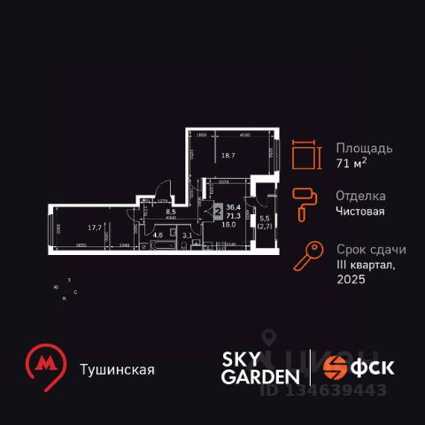 Прямая продажа от застройщика! Жилой Комплекс бизнес-класса. Продаётся 2-к квартира номер 903 общей площадью 52.6 кв.м. на 33-м этаже 43 этажного здания. Чистовая отделка. Цена с учётом скидки. Особенности квартиры: - Мастер-зона с санузлом и гардеробной. Всё для вашего комфорта и удобства, включая личный санузел и гардероб. - Просторная спальня, в которой можно разместить большую кровать. - Линейная планировка - максимальная функциональность и удобство. - Увеличенная ширина окна/окон - больше света и визуального простора. - Увеличенное количество окон - дополнительное освещение и свежий воздух. - Гостевой санузел - комфорт и удобство для ваших гостей. - Евроформат - просторное и удобное жилье с отличной планировкой. - Гибкая планировка - создайте пространство по своему вкусу. - Можно оборудовать рабочее место - комфорт для работы и учёбы. - Можно сделать распашные двери - удобный доступ и стильный акцент. - Возможность добавить спальное место - дополнительный комфорт для гостей. - Проходная кухня-гостиная - идеальное пространство для общения и готовки. - Гардеробная - удобство для хранения и организации вещей. - Ниша под шкаф - компактное и удобное место для вещей. - Лоджия - уютное место для отдыха и тишины. - Просторная лоджия - идеальное место для уютных вечеров. Информация о комплексе: Sky Garden расположен в районе Покровское-Стрешнево. На территории этого района шумит листвой одноименный парк. Зеленый живописный район, реки и каналы поблизости, чистый свежий воздух из подмосковных листов - идеальное место, чтобы ощутить себя частью природы. При этом развитая образовательная, социальная и транспортная инфраструктура оставят вам все преимущества жизни в мегаполисе. Sky Garden - идеальный баланс между природной и городской средой. Транспортная доступность: Всего в 12 минутах пешком до м. Тушинская и 15 минутах до станции Тушинская МЦД. На автомобиле: 2 км до Волоколамского шоссе, 2,5 км до МКАД и 15 км до Садового кольца Внутренняя инфраструктура: К вашим услугам современные игровые площадки: тут ваши дети с удовольствием смогут лазить по бревнам, штурмовать горки и стараться не промокнуть, бегая под струями фонтана. В Sky Garden полно возможностей как для совсем маленьких, так и для взрослых. Предусмотрены активности: мастер классы по йоге на английском газоне, воркаут- площадка, велопарковки. Также в вашем распоряжении на территории комплекса будут: поликлиника, аптека, супермаркет, зона для отдыха, сухой фонтан и площадка для подростков. Пространство для работы, оборудованное кофепоинтом и удобными переговорными. Также к вашим услугам кафе и рестораны в коммерческом кластере. Игровая комната, расположенная в центральном лобби, оборудована двухэтажным комплексом, мягкими татами, книжками и играми, способными увлечь ребятню В каждом подъезде на минус первом этаже оборудованы комнаты для хранения взрослых и детских велосипедов, колясок и самокатов Вкуснейшая горячая выпечка, ресторан с любимыми б