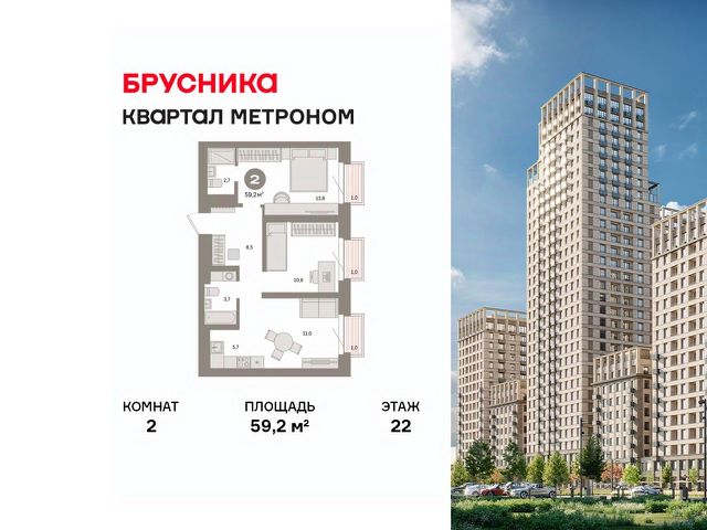Код объекта: 1910743. Продается 2-комнатная квартира 58.5 кв м на 18 этаже в строящемся доме на востоке столицы с потрясающими видами на Москву! В шаговой доступности от национального парка Лосиный остров! В пешей доступности от трех станций метро! ЖК "Метроном", застройщик Брусника. Срок сдачи 4 квартал 2026 года. Квартал состоит из зданий переменной высотности от 8 до 31 этажей. В комплексе имеются пассажирские и грузовые лифты, колясочные и места для хранения велосипедов. Первые этажи отведены под коммерческие помещения. Фасад зданий из керамогранита, с фактурой камня, презентабельные входные группы с обилием зеркал, общественными гостиными с торшерами и мягкой мебелью. Квартира просторная, отделка white box, окна в пол, что гарантирует много света. 2 санузла, кухня-гостиная 16.6 кв м, коридор 8,3 кв м, 2 раздельные комнаты 13,8 и 10,6 кв м., высота потолка 2,7 метров .Есть балкон! Двор без машин с зонами для игр, спорта, отдыха и пикников. Территория комплекса благоустроена и озеленена: имеется система контроля доступа, открытые террасы на крышах, для автовладельцев предусмотрен подземный паркинг. Жилой комплекс расположен в районе с хорошо развитой инфраструктурой. В пешей доступности имеется все необходимое: продовольственные магазины, медицинские и образовательные учреждения, аптеки, кафе и рестораны. Поможем в одобрении ипотеки, в том числе и без первоначального взноса. С удовольствием осуществим трейд-ин (обмен) на Вашу квартиру с доплатой или без. Юридическая экспертиза объекта, проведение безопасных сделок с недвижимостью, срочный выкуп Вашей квартиры за один день! Мы гарантируем безопасную сделку!