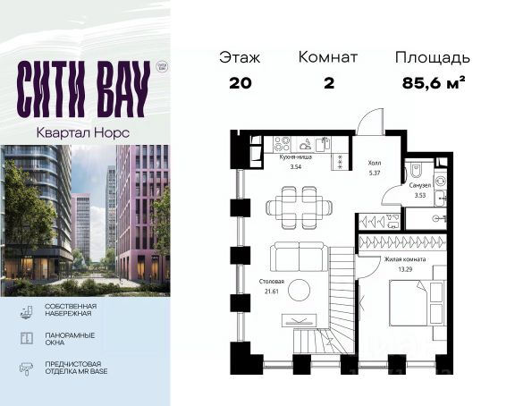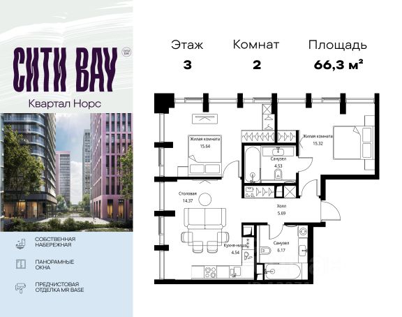 Прямая продажа от застройщика. Продаётся 2-комнатная квартира общей площадью 53.41 м² с предчистовой отделкой в ЖК Сити Бэй на 16-м этаже 53 этажного дома. Концепция жилого комплекса Сити Бэй - настоящий город в городе с отлично развитой инфраструктурой и собственной благоустроенной набережной. На территории жилого комплекса расположено пять кварталов - Атлантик, Пасифик, Индиан, Норс, Клиф. Жилой квартал Сити Бэй отличается оригинальной концепцией и выделяется среди других проектов такими характеристиками как: - Архитектура, - Виды из окон, - Природное окружение, вызывая гордость у жителей и восхищение у прохожих. Вся жизнь района Покровское-Стрешнево строится вокруг водных объектов: - Пойма реки Сходни с уникальной экосистемой, - Речка Химка и Химкинское водохранилище, - Москва-река, - Канал имени Москвы. Кругом вода, и местные с удовольствием этим пользуются. А сразу за рекой - центр водного спорта в Строгино с вейк-парком и яхт-Клубами. Помимо воды, здесь очень много зелени: - Рядом Сходненский ковш памятник природы, естественный амфитеатр глубиной 40 метров; - Парк при усадьбе Братцево с фруктовым садом; - Дубовая роща "Маяк", - Алешкинский лес; - Лесопарк Покровское-Стрешнево с пляжами и бобрами. Главные транспортные артерии района: - Волоколамское шоссе, - Таганско-Краснопресненская линия метро и МЦД-2. Всего за 20 минут можно добраться до центра на машине или метро, а МЦД связывает ЖК Сити Бэй с северными, восточными и юго-восточными районами. Компания MR предлагает своим клиентам специальные условия приобретения квартир в рамках программ ипотечного кредитования от банков-партнеров. Продам 2-комнатную квартиру в новостройке с отделкой на шоссе Волоколамское в Москве.