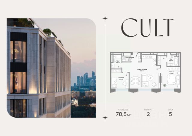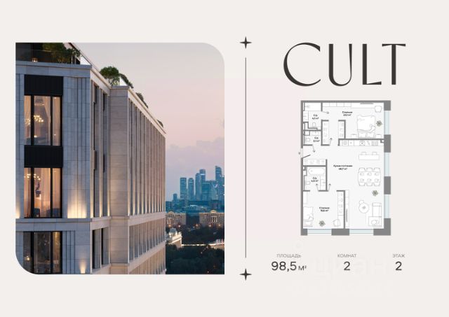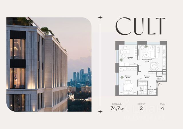Из панорамных окон в пол открываются живописные виды на город и Москву-реку.