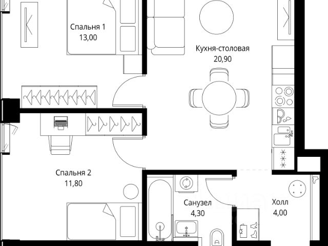 О квартире Продаётся 2-комнатная квартира общей площадью 57.87 кв.м. с отделкой white box. Квартира расположена на 2 этаже корпуса 4.1 в жилом комплексе бизнес-класса "Среда на Кутузовском" в пешей доступности от метро "Кунцевская". О жилом комплексе Комплекс предназначен для людей, которые ставят в приоритет свой комфорт, умеют прислушиваться к себе и понимают, что нужно для внутренней гармонии. Это проект для тех, кто ценит свое время и использует его правильно. Для тех, кто умеет радоваться тому, что есть. "Среда на Кутузовском" — личное место силы и гармонии в двух шагах от центра города. Инфраструктура Жилой комплекс строится в престижном и зеленом Кунцево. Здесь расположены различные торговые центры, престижные учебные заведения (МГУ, РЭУ им. Плеханова, Финансовый университет при Правительстве РФ, РУДН) медицинские клиники. Представлены широкие возможности для поклонников разных видов спорта: от бега в ближайших парках и велозаездов до гребли, баскетбола, футбола, хоккея, фигурного катания и катания на лыжах. На каждый день подойдет World Class с открытым бассейном — он находится всего в 1 минуте от дома. Выбор мест для прогулок также разнообразен: Суворовский парк, лесной массив Крылатских холмов, Москворецкий парк и природный заказник "Долина реки Сетунь". 10 мин пешком: -м. Кунцевская -вся необходимая инфраструктура До 15 мин на авто: -Северо-Западная хорда -Кутузовский проспект -Рублевское шоссе -МКАД -Можайское шоссе Особенности Проект сочетает в себе ритмичность и динамичность, благодаря своей архитектуре, при он этом окружен зеленью и парками. "Среда на Кутузовском" погружает в активный и разнообразный образ жизни, дает вариативные возможности досуга и вдохновляет на новые свершения. —Зоны отдыха у воды —Принцип многослойности в архитектуре —Зона барбекю —Пентхаусы —Умный паркинг —Гайдбук по управлению умным домом —Окна в пол на всех этажах Купить 2-комнатную квартиру в новостройке с отделкой в округе ЗАО в Москве.