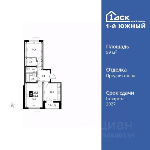 Прямая продажа от застройщика! Жилой Комплекс класса Комфорт Плюс. Продаётся 2-к квартира номер 204 общей площадью 59.1 кв.м. на 20-м этаже 24 этажного дома. Отделка Whitebox. Цена с учётом скидки! Особенности квартиры: - МЦД-5 в пешей доступности - Квартал с южным садом - Свои 3 детских сада и 2 большие школы - Просторная спальня, в которой можно разместить большую кровать. - Линейная планировка - максимальная функциональность и удобство. - Гостевой санузел - комфорт и удобство для ваших гостей. - Раздельный санузел - больше удобства для всех членов семьи. - Просторная кухня - место для семейных ужинов и кулинарных экспериментов. - Просторная мягкая зона - комфорт и уют для отдыха всей семьи. - Возможность добавить спальное место - дополнительный комфорт для гостей. - Гардеробная - удобство для хранения и организации вещей. - Просторная лоджия - идеальное место для уютных вечеров. Квартира с предчистовой отделкой (White box). Вам не придется заниматься черновыми и трудоёмкими работы, а чистовую отделку и дизайн - сделайте на свой вкус. Информация о комплексе: Одно из преимуществ проектов 1- ДСК большие застекленные лоджии. Другое преимущество честный евро-формат. Во всем проекте предусмотрена система Умный дом. В состав устанавливаемого пакета устройств входит: WiFi реле для управления группами потребителей, беспроводной кран перекрытия с эл. приводом, беспроводной сенсор протечки, Яндекс Станция Мини. Его расположение можно назвать удачным за счет транспортной доступности и близости к природным объектам. По соседству лес, а в каждом дворе плодовые деревья. Весной квартал окутывает бело-розовое облако: это цветут яблони, груши, сливы. К августу в воздух наполняется ароматом созревших плодов. Зимой среди покрытых инеем деревьев протянулась лыжня. Транспортная доступность: - Общественный транспорт: Действующая ж/д станция Булатниково (в перспективе будущая МДЦ D5) в пешей доступности, всего 10-12 минут. - Личный автотранспорт: Удобный выезд на трассу М4-Дон в сторону Москвы и области 850 м, до МКАД - 1 км Внутренняя инфраструктура: Красивые продуманные подъезды - еще одно преимущество проекта 1-й Южный. Вход в сквозные подъезды есть и с улицы, и со двора. Благодаря сплошному остеклению в них всегда светло и уютно. Подъезды расположены на уровне земли, поэтому и молодым родителям с коляской, и жильцам с ограниченными возможностями вход и выход неудобств не доставят. В помещении предусмотрено место под стойку ресепшен с выводом инженерных сетей. Если жильцы решат на общем собрании, что необходим охранник или консьерж, организовать для них рабочее место можно быстро и с минимальными затратами. В подъездах предусмотрены уборные для детей и взрослых. Колясочные в каждом подъезде позволяют поддерживать порядок и чистоту на этажах. На случай прогулки с четвероногим питомцем в непогоду в подъездах устроены лапомойки. Во дворах и на общественных территориях 1-ого Южного столько всего интересного для юных обитат