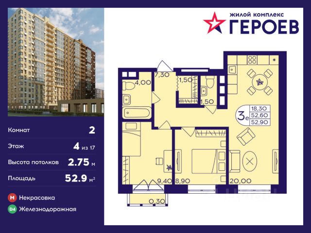 Продаётся 2-комнатная квартира 53.00 кв. м. в жилом комплексе "Героев" в Балашихе, Железнодорожный. Квартира расположена на 4 этаже 410 корпуса. В наличии квартиры с отделкой. Всего 40 минут до центра Москвы. При покупке квартиры в сданном доме ключи выдаются сразу! Жилой квартал "Героев" - это уютный проект для семей с детьми. В квартале созданы все условия для досуга всех возрастов: игровые и спортивные площадки, места для отдыха и прогулочные зоны. За 15 минут можно дойти от дома до Ольгинского лесопарка, популярного места для отдыха на свежем воздухе. На территории жилого комплекса уже открыт детский сад на 250 мест и началось строительство еще одного - для 220 малышей, а также школы для 1320 учеников. Рядом работают магазины, кафе, супермаркеты, пункты выдачи. Преимущества: • В уютных светлых квартирах с просторными кухнями-гостиными удобно встречать гостей и проводить время наедине друг с другом. • Благодаря увеличенному остеклению в комнатах много света. • Квартиры продаются с отделкой, можно заселяться сразу после получения ключей.
