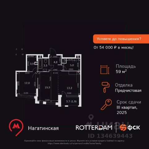 УСПЕЕТЕ КУПИТЬ ДО ПОВЫШЕНИЯ? От 54 000 рублей в месяц! Прямая продажа от застройщика! Жилой Комплекс бизнес-класса. Продаётся 2-к квартира номер 79 общей площадью 46.2 кв.м. на 12-м этаже 29 этажного здания. Отделка Whitebox. Цена с учётом скидки. Особенности квартиры: - Мастер-зона с гардеробной. Просторное место для отдыха и удобного хранения вещей. - Линейная планировка - максимальная функциональность и удобство. - Линейная планировка - максимальная функциональность и удобство. - Увеличенное количество окон - дополнительное освещение и свежий воздух. - Постирочная - организуйте пространство для стирки и сушки вещей. - Гардеробная - удобство для хранения и организации вещей. - Ниша под шкаф - компактное и удобное место для вещей. - Лоджия - уютное место для отдыха и тишины. Квартира с предчистовой отделкой (White box). Вам не придется заниматься черновыми и трудоёмкими работы, а чистовую отделку и дизайн - сделайте на свой вкус. Информация о комплексе: В ЖК Роттердам отличное расположение, которое позволит вам выбирать свой сегодняшняшний маршрут и транспорт исходя из настроения, целей и погоды. Отсюда удобно добираться в центр как на метро станция находится в пешей доступности, так и на автомобиле. Варшавское шоссе связывает жилой комплекс с ТТК, а через Люсиновскую и Мытную улицы с Садовым кольцом. В качестве альтернативного маршрута можно использовать Нагатинскую набережную: дорога вдоль Москва-реки приведет к Кремлю и Павелецкому вокзалу. Для неспешной поездки предусмотрены трамвайные маршруты, а в теплое время года веломаршруты вдоль реки. Транспортная доступность: Всего в 5 минутах пешком до метро Нагатинская и 8 минутах от МЦК Верхние Котлы. Рядом Аэроэкспресс до метро Домодево. До ТТК 2,2 км и 4,9 км до Садового кольца. Внутренняя инфраструктура: Если вы ищете идеальный баланс между отдыхом и работой и обладаете активной жизненной позицией - ЖК Роттердам вам понравится. В ЖК: зоны коворкинга, плейхаб и детские площадки для отдыха всей семьей. Близость к деловому центру Москвы, в окружении 5 парков, рядом спортивные и развлекательные центры Если вы любите живописные виды и долгие прогулки - ЖК Роттердам - отличный вариант для вас, так как он расположен прямо на Нагатинской набережной с выходом на Москву реку! В ЖК Роттердам соблюден баланс между высоткой и малоэтатажным зданием, которое не потеряло ощущение уюта и не создает впечатление городских джунглей Если вы любите быть на высоте и без ограничений - выбирайте верхние этажи Для тех, кто ценит комфорт и собственное время Для тех, кто ценит комфорт и личное пространство Для тех, кому важен комфорт, безопасность и личное пространство на предомовой территории