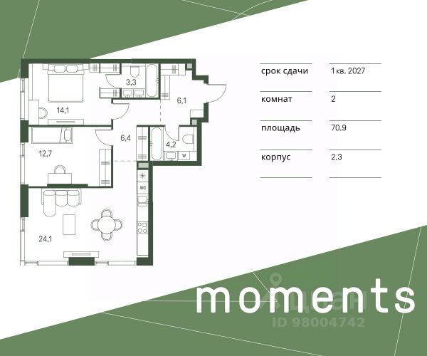Цены указаны с условием 100% оплаты и стандартной ипотеки. Продается 2-к. квартира номер 449 общей площадью 70.2 кв.м. на 7-м этаже 40 этажного дома, корпус 2.3. С отделкой White Box. Moments — ЖК бизнес-класса, расположен на расстоянии вытянутой руки от старинного усадебного парка Покровское-Стрешнево. Moments — это единение города и природы, дом, который помогает обрести гармонию и баланс в жизни. Moments расположен на Волоколамском шоссе с удобным выездом в центр и в область, а также с расположенными в пешей доступности объектами транспортной инфраструктуры (МЦК и МЦД-2). Жилой комплекс будет состоять из 3 очередей — 8 корпусов высотой от 4 до 47 этажей. Здания будут расположены под разными углами для максимальной открытости солнцу и максимально роскошным видовым характеристикам. Внутренний двор: Иммерсивное благоустройство от британского бюро Gillespies и West8 сфокусировано на эмоциональном и чувственном опыте. Каждая прогулка по Moments погружает в путешествие со сменой сценариев и плавным потоком уникальных моментов. - Пешеходная экотропа,которая соединяет комплекс с парком Покровское-Стрешнево - Двор с фонтаном - Зеленые сады и лаунж-зоны - Пространства для пикников и общения - Зоны активного отдыха. Детские и спортивные площадки - Пешеходные тропы и велодорожки - Разнообразная коммерческая инфраструктура - Детский сад на 175 мест - Школа на 300 мест - Игровые площадки из натуральных материалов - Сенсорные сады - Безбарьерное зонирование Продается 2-комнатная квартира от застройщика рядом с метро Щукинская.