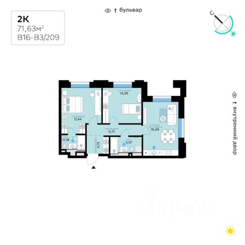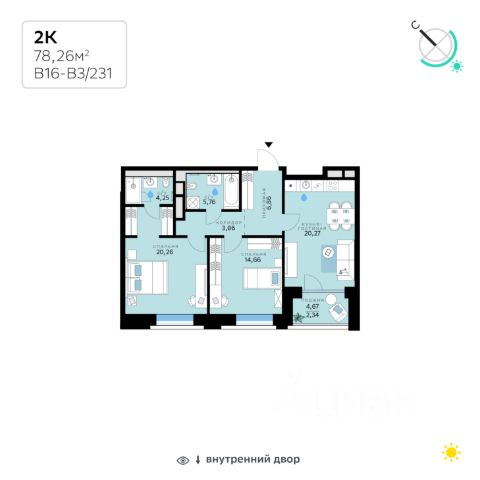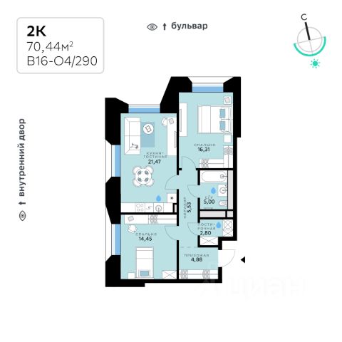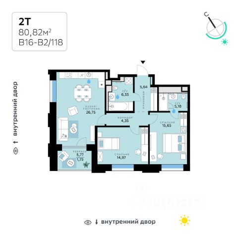 В продаже — двухкомнатная квартира с чистовой отделкой, общей площадью 73,27 кв. м. Квартира расположена на четвертом этаже восьмиэтажного корпуса Оптимум в квартале В16 нового района СберСити, который строит Сбер. Архитектуру квартала В16 создало итальянское бюро ARCHEA middle east: каждый дом узнаваем, но вместе они складываются в спокойный, цельный ансамбль. В облицовке сочетаются тёплые оттенки кирпича и металла, за счёт игры фактур фасады выглядят живыми и меняются в разное время дня. Строгая геометрия поддерживает ритм города, а мягкая природная палитра помогает чувствовать себя дома, а не в деловом квартале. Дом возводится по технологии монолитного строительства. Все квартиры передаются с чистовой отделкой. Отделка предлагается на выбор в трёх стилях — Новая классика, Скандинавский и Средиземноморский — в нескольких цветовых решениях. В квартирах предустановлена система "умный дом", объединяющая управление квартирой, домом и прилегающей территорией. Можно регулировать климат и освещение голосом или через смартфон. Высота потолков — от 3,12 м. Квартал состоит из девяти домов средней этажности — от 7 до 10 этажей. Корпуса формируют большой внутренний двор площадью два гектара. Во дворе предусмотрены зоны для разных сценариев: просторные площадки для детей, пространства для активного досуга и спорта, тихие места для отдыха и спокойного времени, а также удобные рабочие места под открытым небом. Здесь легко найти своё — для жизни, здоровья и занятий тем, что действительно нравится. В доме предусмотрены: уютное лобби с зоной ожидания, зона коворкинга в лобби, детская игровая комната на первом этаже, общественная терраса для досуга резидентов с диванной группой и зоной для йоги с настилом, лапомойка, санузел, помещение для хранения колясок и велосипедов, подземный паркинг. СберСити — это новый жилой и деловой район на западе Москвы, в одном из самых экологически чистых и престижных мест столицы. Это первая в России и крупнейшая в мире инновационная городская среда, созданная по международным стандартам зелёного проектирования. Здесь внедряются решения в области энергоснабжения, вакуумного мусороудаления, тестирования зелёных технологий, а в дальнейшем — системы искусственного интеллекта для управления домами и городской инфраструктурой. Строительство проекта началось в 2021 году, заселение первых корпусов — с лета 2024-го. Общая площадь территории — 461 га, из них более 2,5 млн кв. м жилья и около 833 тыс. кв. м офисных пространств. Будет построено 7 школ, 13 детских садов и 2 поликлиники. В СберСити будут жить 65 тыс. человек и работать 70 тыс. Развитием территории занимается АО "Рублёво-Архангельское", входящее в группу Сбер. СберСити — место, где хочется жить, работать и растить детей. Переезжайте в СберСити!