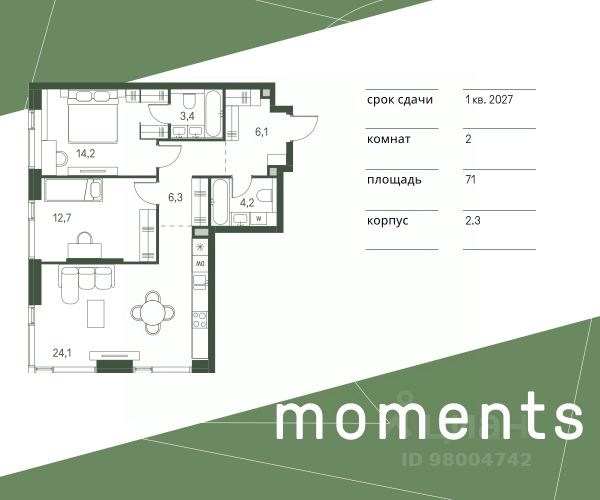 Цена указана с учётом скидки при 100%-й оплате, несубсидированной ипотеке, рассрочке (кроме программы "Рассрочка 0%"). Продается 2-комнатная квартира площадью 62.80 кв. м с отделкой. Квартира находится на 19 этаже 26-этажного корпуса 4, в новом жилом комплексе бизнес-класса Level Войковская, расположенном рядом с живописным заповедником "Покровское-Стрешнево" (застройщик - компания Level Group/Левел групп). Прекрасная транспортная доступность - 7 мин. пешком до станции МЦК "Балтийская"; - 15 мин. пешком до станции метро "Войковская"; - 8 мин. на машине до ТТК; - 15 мин. на машине до центра Москвы; - 20 мин. на машине до Москва-Сити. Продуманный архитектурный проект - стильная архитектура от мастерской Фефелова В. В.; - панорамные виды на парки, Химкинское водохранилище и Останкинскую башню; - лобби с высотой потолков до 6,45 метров; - более 20 видов планировочных решений, включая редкие форматы квартир с террасой и увеличенной высотой потолков до 5,42 метров; - 2 варианта дизайнерской отделки в корпусе 4, предлагаются как дополнительная опция к отделке white box: стиль Modern в светлых холодных тонах и стиль Classic в нейтральной бежевой гамме. Квартиры в корпусах 3 и 5 сдаются без отделки. Расположение Level Войковская строится в престижном Северном округе Москвы. Развитая инфраструктура и живописная природа переплетаются в единый ансамбль, столь значимый для комфортной жизни. Войковский район окружают парки и набережные. В шаговой доступности - парк "Покровское-Стрешнево", не более 15-ти минут на велосипеде занимает путь до Тимирязевского парка и 9-ти минут до парка усадьбы Михалково. Рядом более 60 школ, 75 дошкольных учреждений, 17 государственных и 6 частных вузов, 25 супермаркетов, 4 торговых центра, среди которых ТЦ "Метрополис" и ТЦ "Авиапарк". Внутренняя инфраструктура На территории жилого комплекса предусмотрены коммерческие помещения: кафе, ресторан, пекарня и другие сервисы откроются на первых этажах корпусов. Для жителей будет доступен отапливаемый подземный паркинг на 244 машино-места с доступом с любого этажа на лифте. На территории паркинга будет расположено 125 кладовых помещений для хранения сезонного инвентаря. Лобби и благоустройство Дизайн лобби Level Войковская создан совместно с бюро BLANK. Это уютные гостиные, где хочется задержаться. Теплая цветовая гамма, ресепшен, зоны ожидания, лапомойки и гостевые санузлы - каждая деталь превращает лобби в комфортное продолжение вашего дома. 1,15 га площади в первых двух этапах строительства отведено под приватный внутренний двор, который спроектирован совместно с бюро "Правда". Детские площадки для всех возрастов, спортивные пространства для йоги, воркаута и петанка, уютные зоны для тихого отдыха или работы. Здесь утро начинается с вдохновения, а вечер наполнен приятными моментами. Лифты Комфортное перемещение внутри жилого комплекса будут обеспечивать надёжные лифты с доступом в паркинг с жилых этажей. В каждом корпусе предусмотрено по 3 грузопассажирских лифта.