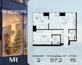 Прямая продажа от застройщика. Продаётся 2-комнатная квартира общей площадью 54.40 м² с предчистовой отделкой в ЖК VEER на 15-м этаже 22 этажного дома. Жилой комплекс бизнес-класса VEER от компании MR — это футуристичный мультиквартал, расположенный в престижной локации на западе Москвы. Благодаря переменной высоте башен — двух 22-этажных, 46-этажной и двух 59-этажных — возникает динамичность в силуэте комплекса, а его яркий образ вносит разноплановость в архитектурный пейзаж района. Расположение и транспортная доступность: • VEER удобно расположен в непосредственной близости от Кутузовского проспекта, обеспечивая быстрый доступ к центральным районам Москвы • Комплекс находится непосредственно напротив самого большого природного заказника в Москве - парка "Долина реки Сетунь", а за семь минут можно доехать до памятника садово-паркового искусства, Троекуровского леса. • Всего в 15 минутах - центр города, самая престижная бизнес-школа управления России "Сколково", дом творчества "Переделкино". • 18 минут пешком до м. "Давыдково" • Открытие новых станций метро в шаговой доступности в будущем Инфраструктура: Разнообразить свой день резиденты VEER смогут также проводя больше времени на свежем воздухе. Двор разделен на 4 зоны разных эмоций и действий, которые пересечены и соединены веерными прогулочными маршрутами: • Спортивная площадка устроена в глубине "Кленовой рощи" • В "Чайном домике" будет создан навес с утеплением для отдыха в любую погоду • Площадки для детей воплотятся в "Волшебный лес" с цветами, зеркалами и световым дизайном • "Центральная площадь" устроена у водного оазиса живописного пруда. Компания MR предлагает своим клиентам специальные условия приобретения квартир в рамках программ ипотечного кредитования от банков-партнеров. Продам 2-комнатную квартиру с отделкой от застройщика в округе ЗАО в Москве.