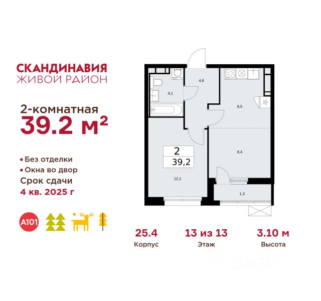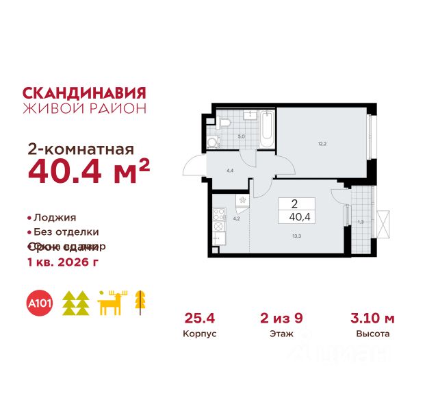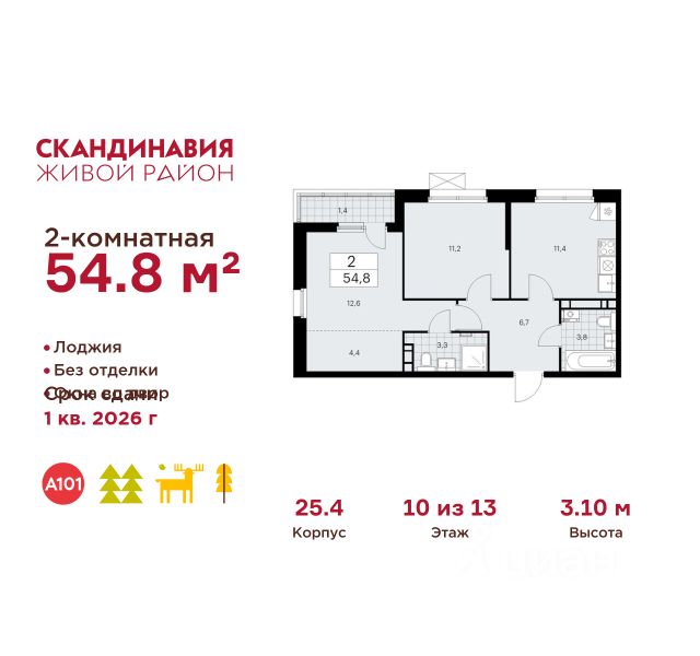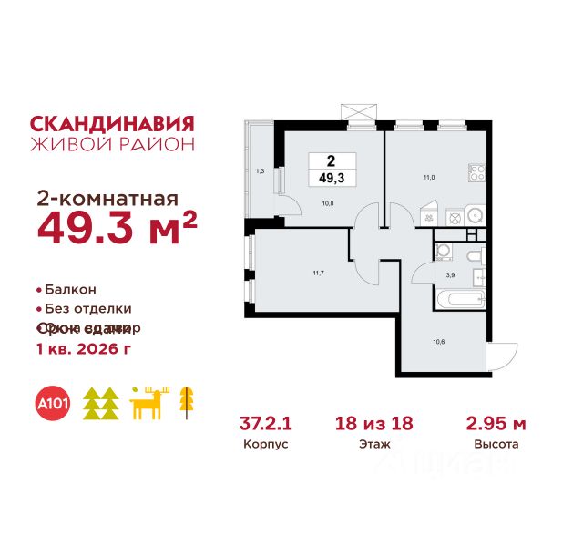 Продается двухкомнатная квартира 756 в новостройке Жилой район "Скандинавия" по адресу Москва, ТиНАО, Новомосковский АО, Сосенское С/П, Коммунарка пос., жилой комплекс Скандинавия, 18.2.6, район Коммунарка, Новомосковский административный округ, Москва. Общая площадь квартиры - 48.90 кв. м., этаж 11 из 18, секция 10. Тип проекта, по которому построен дом - монолит, компания-застройщик - ООО "А101". Стоимость квартиры - 19914525 Р. Срок сдачи - 4 квартал 2026. ПРЕДЛОЖЕНИЯ ОТ ЗАСТРОЙЩИКА В ФЕВРАЛЕ 2026: Скидки до 10% на все квартиры. Только в офисах продаж до 28 февраля. Ипотека от 13,9 % для всех! На весь срок. "Семейная ипотека" вернулась. Ставка от 3,5 % на весь срок! Без удорожания! Выгодное ипотечное комбо: Ипотека от 2200 р./мес. и от 6 % после рождения ребёнка! Ипотека для всех "Держи пять!" - ставка 5 % на 2 года! *более подробную информацию по скидкам и акциям уточняйте в отделе продаж ЖК "Скандинавия" на границе Бутовского лесопарка (1610 га) - это баланс качественного жилья и сервисов, зелёных пространств для активного и созерцательного отдыха. Выразительная архитектура и цветовая гамма монолитных корпусов комфорт- и бизнес-класса (8-17 этажей) созвучны скандинавским мотивам, органично интегрированы в великолепный природный контекст. Огороженные дворы свободны от машин, в них продуманы места для отдыха и работы на свежем воздухе, озеленение, детские и спортивные площадки. Для прогулок, встреч и районных праздников - площадь Туве Янссон с "сухим" фонтаном, вековыми дубами и единственным в мире памятником писательнице; пешеходный променад 2 км; 3 крупных природных ручья; более 15 км велосипедных и прогулочных дорожек с арт-объектами. Инфраструктура района включает современные школы и детские сады, центр впечатлений, фитнес-клубы, развивающие и творческие центры, магазины, кафе, салоны красоты. На подземных этажах - паркинги и кладовые. Преимущества "Скандинавии": - ст. метро "Потапово" - 100 м от ближайших домов (открыта!) - удобные выезды на трассу Солнцево - Бутово - Варшавское шоссе и ул. Бачуринская - свои школы и детские сады - инфраструктура на первых этажах и рядом с домом - лесопарк, природные водоёмы, прогулочные маршруты