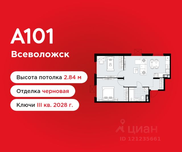 2-комнатная квартира площадью 57.20 в ЖК "А101 Всеволожск" на 2 этаже. Квартира без отделки. Вид из окна во двор. В квартире 1 санузел. Высота потолков 2.84 м. ОТДЕЛКА Квартира передается без отделки. Благодаря тому, что в данном типе отделки стены не возводятся, вы сможете создать удобную планировку и самостоятельно организовать зонирование комнат. ДВОРЫ И ОКРУЖЕНИЕ Большая часть территории комплекса отведена под зелёные благоустроенные зоны: теневые сады, уютные городские пространства с развитой тротуарной сетью и велодорожками - всё для вашего активного и здорового образа жизни. Внутренние дворы закрыты от посторонних и свободны от автомобилей. Каждый дом оснащён высокотехнологичными системами видеонаблюдения и контроля доступа, обеспечивая максимум безопасности и спокойствия для вас и ваших близких. Окружение района - живописный природный ландшафт. Всего в 5 минутах ходьбы располагается Ковалёвский лесопарк - источник кислорода, пространство для спорта, отдыха и приятных прогулок на свежем воздухе. ПАРАДНАЯ Мягкая мебель, живые растения и натуральные материалы в отделке формируют современный и уютный интерьер входной группы, радующий глаз и создающий приятную атмосферу для встреч с гостями. Для вашего удобства реализован безбарьерный вход, отвечающий требованиям доступной среды для всех жильцов, а также в каждой парадной имеется отдельное помещение для хранения колясок и велосипедов. ИНФРАСТРУКТУРА: В жилой застройке сохранена естественная среда благодаря разнообразию растительности, извилистым дорожкам и уличной мебели из натуральных материалов. Здесь находится насыщенная сеть экотроп протяжённостью более 10 км прямо у дома, а просторная площадь позволяет жителям приятно провести время, общаться с соседями и отдыхать. Также предусмотрены зоны для отдыха и специально оборудованные спортивные площадки для активного образа жизни на свежем воздухе. На территории района ГК "А101" создает современный учебно-образовательный кластер, В "А1О1 Всеволожск" предусмотрена современная школа на 1300 учеников и 2 детских сада Всё самое необходимое - рядом с вашим домом. Выпить утром кофе в уютном кафе или поужинать с друзьями, отвести детей на развивающие занятия или игровую площадку, купить продукты и товары первой необходимости. В проекте запланировано уникальное гастрономическое пространство, располагающееся на основном пешеходном бульваре жилого района. Территория дополнительно оборудована местами отдыха на свежем воздухе, а для ресторанов и кафе будет предусмотрена возможность организации летних веранд. ЗАСТРОЙЩИК: ГК "А101" - один из крупнейших застройщиков России. Каждая восьмая квартира, проданная в Москве, находится в районе, построенном компанией, что подчеркивает её значимость и успех на рынке недвижимости.