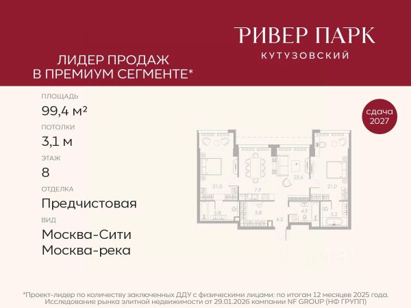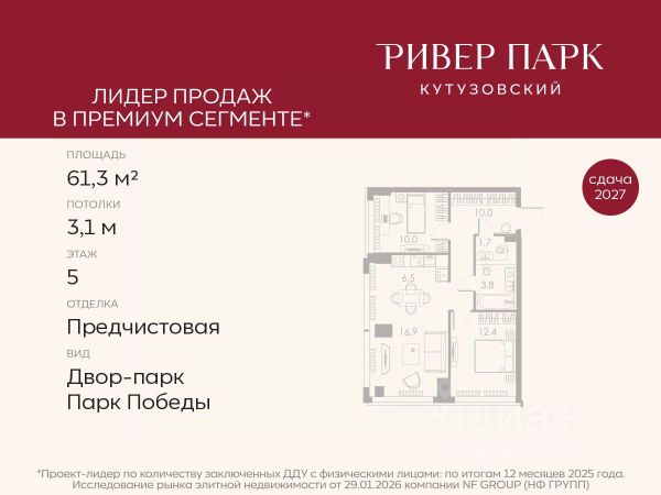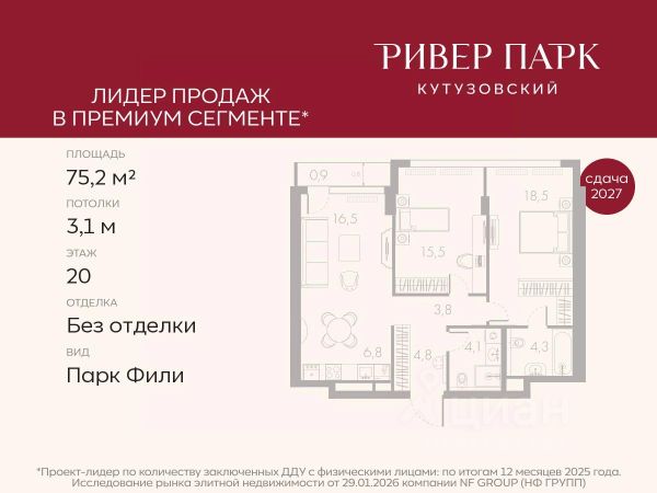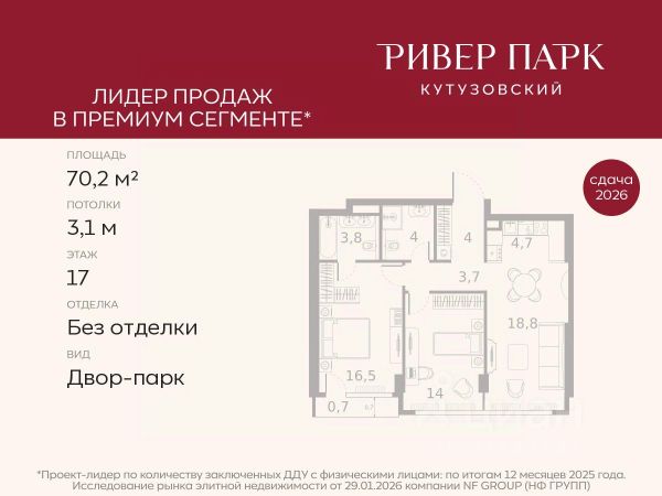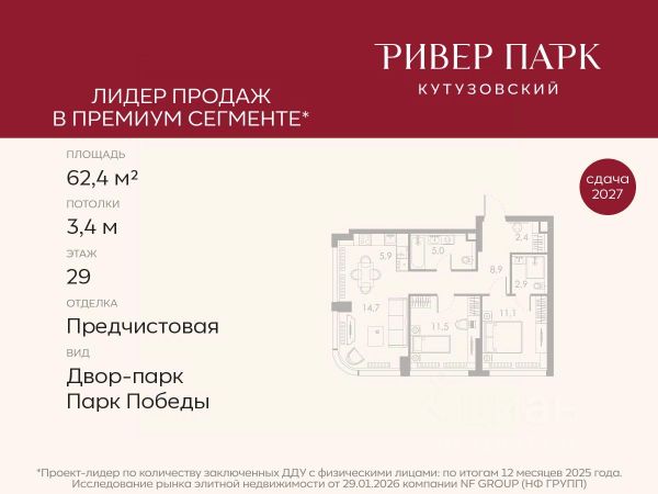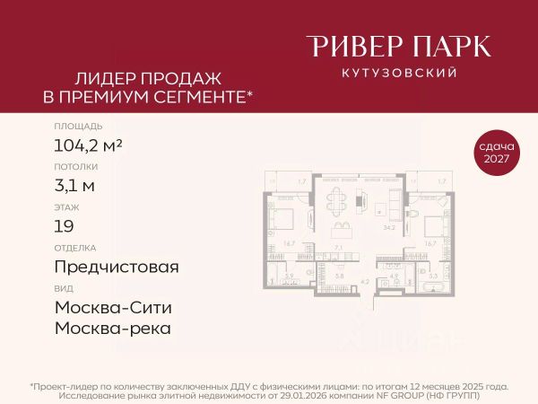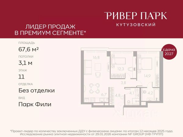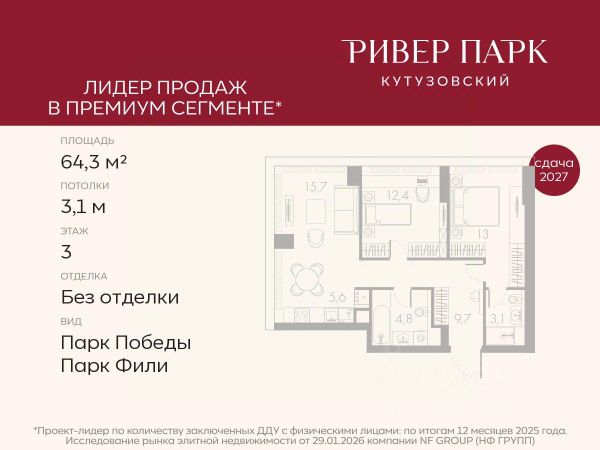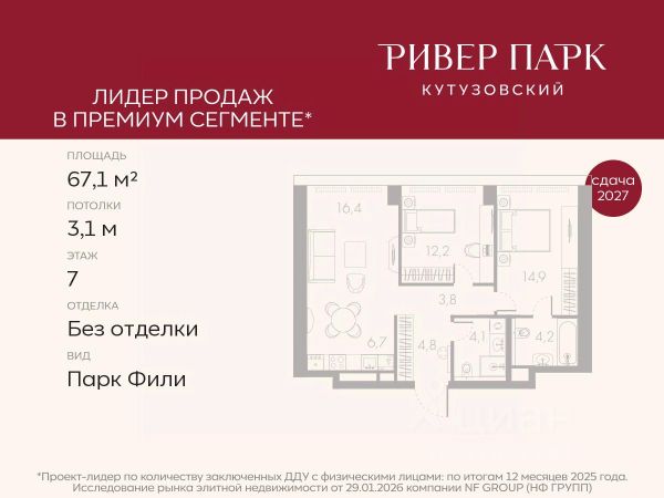 Продается 2-к квартира площадью 71.4 кв.м. на 11-м этаже в жилом комплексе премиум-класса Ривер Парк Кутузовский в Башне Янтарь Премиальный жилой комплекс Ривер Парк Кутузовский строится в одном из самых престижных районов столицы Дорогомилово, на берегу Москвы-реки с лучшими видами на Москва-Сити. Яркий проект в стиле эко-футуризма станет самым масштабным и самым высотным ЖК в локации Кутузовского проспекта. Расположение и Транспортная доступность: • На берегу Москвы-реки, напротив Москва-Сити • 600 метров до Кутузовского проспекта • Удобный съезд с ТТК • Прямой выезд на МКАД по Проспекту Багратиона. • В пешей доступности 3 станции метро: Фили, Парк Победы, Кутузовская, а также станция МЦД Фили. Архитектура от именитого бюро ADM отличается уникальной пластикой фасадов - башни словно парят в воздухе, играя гранями как драгоценные камни. Жилой комплекс состоит из 5-ти небоскребов с приватным парком 2 Га и внешней торговой галереей с открытым доступом. В закрытом внутреннем дворе уникальная по насыщенности клубная инфраструктура только для жителей: • Площадка Мультиспорт (баскетбол, футбол, воллейбол, большой теннис) • Детский игровой клуб Немо • Музыкальная студия • Клуб Гедонист с бильярдной • Студия стиля для стилистов и массажа • Гольф-симулятор • Караоке Впервые в Москве лаунж-зоны на крыше небоскребов, только для жителей: • Всесезонные беседки иглу • Джакузи • Гриль • Площадка для занятий йогой • Самые высоки качели на крыше в России • Видовые площадки Благоустройство комплекса занимает 3 гектара и разработано мировым экспертом по городским парковым ландшафтам - голландским бюро WEST8. Концепция проекта дать жителям отдохнуть от городского ритма и расслабиться среди природы. В Приватном парке уже высажены хвойные деревья-крупномеры сосны и ели. • Зеркальный пруд с арт-объектом • Две детские площадки • Точка спорта с тренажерами и турниками • Цветущий сад • Зеленый театр со сценой и проектором • Видовая зона отдыха с очагом • Солнечная терраса с лежаками На территории жилого комплекса планируется строительство коммерческого образовательного центра, включающего детский сад на 200 мест и школу на 460 мест.