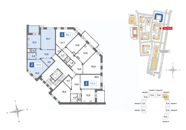 Продаётся 2-комнатная квартира в сданном доме (Семёна Гордого, 1), срок сдачи: III-кв. 2018, общей площадью 72.6 кв.м., на 6 этаже. Расположение, транспортная доступность Жилой комплекс "Ново-Никольское" - это жилой район класса комфорт, в состав которого входят несколько десятков жилых зданий разнообразных форматов (коттеджи, дуплексы, таунхаусы, малоэтажные дома высотой до 3 этажей и многоэтажные корпуса высотой до 9 этажей). Район располагается на просторной территории площадью 115 га рядом с деревней Ивановское Первомайского поселения Троицкого административного округа Москвы, в 21 км от МКАД по Киевскому шоссе. Удобная транспортная развязка, ведущая к шоссе, находится в непосредственной близости от "Ново-Никольского". Трасса пролегает мимо аэропорта "Внуково". Ближайшая железнодорожная станция, "Апрелевка", расположена в десяти километрах от комплекса. Добраться от комплекса до ближайших станций метро можно на маршрутном такси 304 (до станций метро "Румянцево", "Тропарёво" и "Юго-Западная"), на автобусе 526 или маршрутном такси 522 (до станции метро "Тёплый Стан"). Инфраструктура Внутренняя инфраструктура ЖК "Ново-Никольское" включает в себя три детских сада на 150, 100 и 40 мест, две общеобразовательные школы на 825 и 285 мест, школу искусств, торгово-развлекательный центр, минимаркет, различные сервисные службы и другие объекты. Детский сад на 150 мест и школа на 825 мест уже построены и в ближайшее время будут введены в эксплуатацию. Для автовладельцев в комплексе предусмотрены парковочные места, как на придомовой территории, так и в крытом семиуровневом паркинге. Экологическая ситуация здесь благоприятная. Со стороны Киевского шоссе "Ново-Никольское" окружают лесные массивы. Река Десна, протекающая вдоль территории жилого комплекса, украшена живописным каскадом прудов. В километре от комплекса находится усадьба Старо-Никольское, главный дом которой был построен в 19 веке, и отреставрирован в 2015 году. Надежность застройщика Девелопером жилого комплекса "Ново-Никольский" выступает производственно-строительное управление "АГРОСТРОЙ", зарегистрированное в 2005 году. Организация работает как в России, так и в странах ближнего зарубежья. "АГРОСТРОЙ" возводит не только жилую недвижимость, но и социально-значимые объекты инфраструктуры: медицинские центры, торгово-развлекательные комплексы, административные здания. Также в портфеле организации есть спортивные сооружения крытого и открытого типов. При возведении жилых комплексов девелопер ориентируется на строительство целых кварталов с развитой инфраструктурой. Помимо строительных работ, "АГРОСТРОЙ" производит отделочные, комплектующие, строительные материалы, осуществляет земляные работы, занимается прокладкой наружных сетей, разводкой коммуникаций внутри зданий, а также сносом ветхого жилья. Поскольку объекты организация сдаёт "под ключ", она также выполняет отделочные работы и ландшафтное оформление придомовых территорий. Архитектура В комплексе есть все необходимые центра