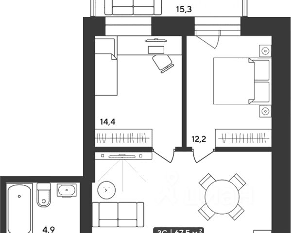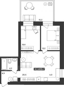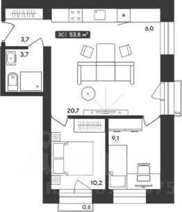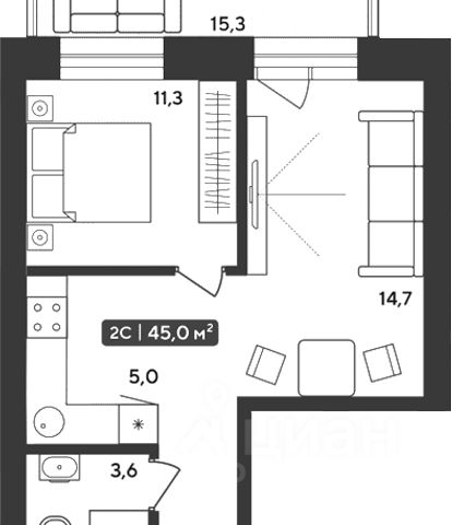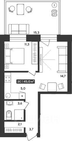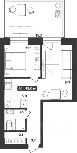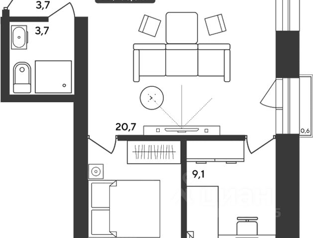 Компактная студия остается высоко ликвидным форматом жилой недвижимости, поэтому будет интересна для приобретения своего первого жилья, жизни соло и инвестирования.