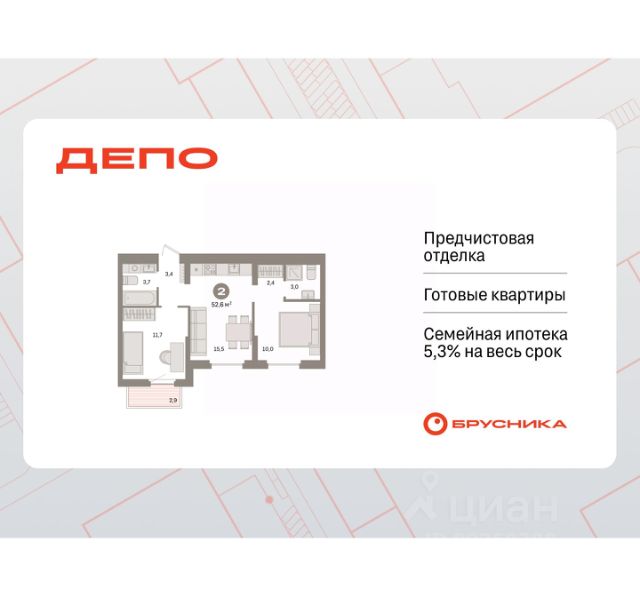 • ✓ В базе Циан 2,8 тыс. 2-комнатных квартир от застройщика Брусника в Москве