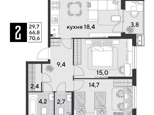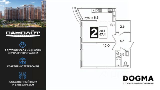 • ✓ В базе Циан 4,9 тыс. 2-комнатных квартир от застройщика DOGMA в Москве