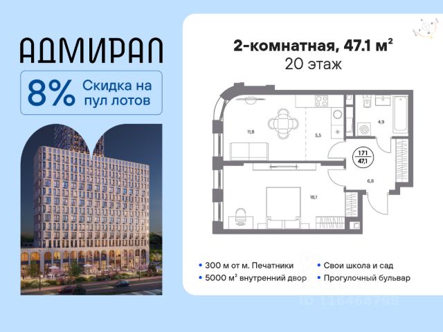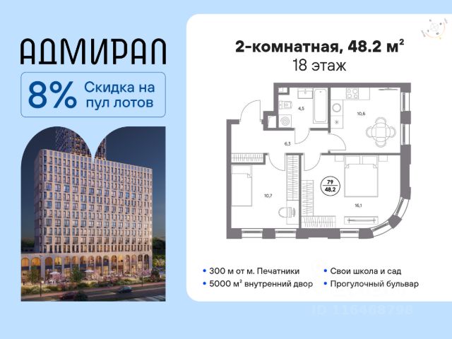 В продаже 2 комнатная квартира площадью 131.70 кв. м, расположенная на 3 этаже 7 этажного дома. Квартира находится в 1 корпусе жилых домов делюкс-класса "Рождественка 8". Проект класса De Luxe "Рождественка 8" расположится там, где никогда не прерывалась связь времён, а XIV век плавно перетёк в ХХI. Ансамбль включает в себя 7 современных особняков, реставрацию палат Тверского подворья, эксклюзивные планировки с террасами и очень высокими потолками, собственную инфраструктуру, приватный ландшафтный двор-парк с функциональным зонированием и охраняемой территорией. В числе авторов проекта - лучшие команды дизайнеров и архитекторов: бюро "Цимайло, Ляшенко и партнеры", архитектурное бюро О. Клодта, SCAPE и другие. Расположение Пешком: - 4 мин. до ст. м. "Кузнецкий мост"; - 6 мин. до ст. м. "Лубянка"; - 9 мин. до Большого театра; - 11 мин. до Цветного бульвара; - 15 мин. до Красной площади. На автомобиле: - 7 мин. до парка "Зарядье"; - 10 мин. до Москворецкой набережной; - 10 мин. до Садового кольца; - 20 мин. до ТТК. Благоустройство - безопасный двор с ландшафтным зонированием; - лаунж-зоны с вертикальным озеленением; - приватные зеленые кабинеты; - ландшафтная подсветка; - тихий сад с водоемом; - водопад прямо во дворе; - амфитеатр с перголой и "живой" крышей из растений; - большой игровой домик для детей; - инвентарь для активных и развивающих игр; - песочницы и тактильные модули для малышей. Инфраструктура - гранд-лобби с авторским дизайном; - многофункциональные переговорные комнаты; - коворкинг; - мини-кинотеатр; - бар; - кофе-поинт; - помещения для мероприятий с кейтерингом; - ритейл-зона с ресторанами и бутиками; - двухуровневый подземный паркинг на 169 машино-мест; - зарядные устройства для электрокаров; - кладовые для хранения сезонных вещей; - лифты с доступом в паркинг. Окружение - Музыкальный театр Станиславского, Музей современного искусства, "Новый Манеж", цирк Никулина, Большой театр; - Чистые пруды, парк "Зарядье", Александровский сад, набережная Москвы-реки; - крупные торговые центры, ВУЗы и гипермаркеты; - десятки частных и государственных учебных заведений, учреждений дополнительного образования. Продается 2-комнатная квартира от застройщика Галс-Девелопмент в Москве.