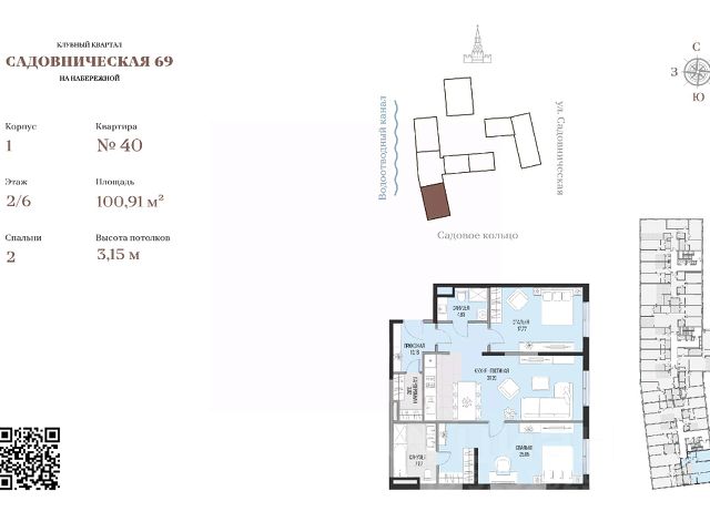 Просторная светлая квартира площадью 103,42 кв.м. Из окон квартиры открываются живописные виды на Москва-реку, старинные мосты и величественные башни Кремля. Витражное остекление выходит на тихую гладь реки или внутренний сад — такое решение обеспечивает максимум естественного света и красивые панорамы.