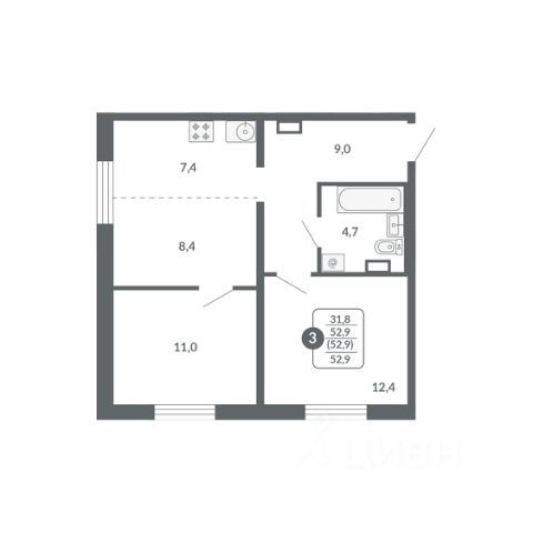 | 🔷 Средняя цена за м2: | 110 тыс. руб./м² |