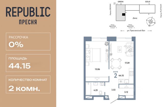 Новая квартира в ЖК "Republic" напрямую от федерального застройщика "Страна Девелопмент". Продается 2комнатная квартира на 20 этаже от застройщика Страна Девелопмент. Площадь квартиры 44,31 кв. м. Дизайн-квартал "Republic" — новый проект премиум-класса в Москве. 10 жилых башен и 4 восстановленных здания локомотивного депо образуют уникальное пространство. "Republic" — место, где вы ощутите гармонию истории и современности. Детский сад, SPA-комплекс с бассейном, гастрономический и шопинг-центры, собственный бульвар и яркие арт-пространства — для жителей предусмотрены все элементы премиального комфорта. Преимущества Уникальная жизненная среда, где инфраструктура включает гастрономию, SPA-комплекс с термами, образовательные и развлекательные заведения, арт-пространство и шопинг-аллеи. Двор от британского бюро "Gillespies": на 4 гектарах закрытого двора расположится 7 игровых зон для разных возрастов с ручьем и сухим фонтаном, арт-галерея под открытым небом и большой прогулочный бульвар. Лобби с террасой в башнях "Reds" — лаконичное пространство галереи-лобби, где можно проводить деловые и дружеские встречи, не нарушая приватности квартиры. В тёплое время года не остаётся пустующей терраса на крыше, которая привлекает непринуждённой атмосферой и прохладительными напитками в баре. Клубная гостиная — стильное пространство оборудовано кухней и залом для торжеств на 40 человек, а для того, чтобы побыть наедине с собой, почитать книгу или провести онлайн-встречу в гостиной оборудована мастерская с библиотекой. Уникальные форматы квартир, где можно реализовать любой жизненный сценарий: от стильного офиса в двухэтажной квартире до угловых лотов с просторными гостиными. А эксклюзивные пентхаусы с высокими потолками и панорамными окнами дарят захватывающие виды на Москву.. Отделка Квартиры сдаются без отделки или в формате White box. При отделке White box уже были выполнены все шумные и грязные работы руками наших специалистов: произведена разводка электричества с установкой подрозетников, установлены откосы из гипсокартона, устроена стяжка пола с шумоизоляцией. Способы покупки Сотрудники "Страна Девелопмент" будут сопровождать вас на каждом этапе сделки, помогут получить одобрение по ипотеке или снизить ежемесячный платеж. - ипотека - рассрочка - с использованием материнского капитала - 100% оплата наличными