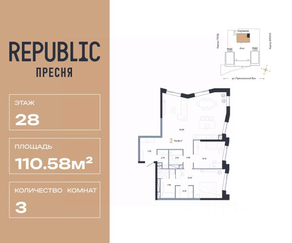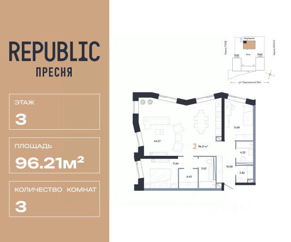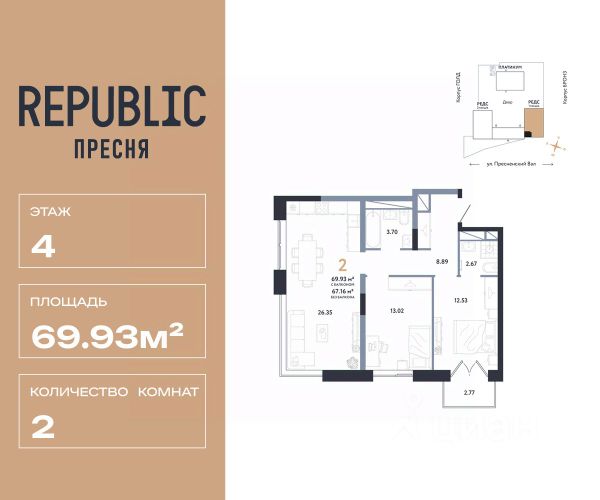 Рассрочка 0% с первым взносом от 20%, ипотека с субсидией или наличные. Подберём способ оплаты индивидуально. Продается 3комнатная квартира на 16 этаже от застройщика Страна Девелопмент. Площадь квартиры 70.95 кв. м. Дизайн-квартал "Republic" — новый проект премиум-класса в Москве от федерального застройщика "Страна Девелопмент". ЦАО, Пресня, 7 мин. от метро "Белорусская". 10 жилых башен и 4 восстановленных здания локомотивного депо образуют уникальное пространство. "Republic" — место, где вы ощутите гармонию истории и современности. За 12 мин. вы сможете дойти до Московского зоопарка, за 10 мин. на авто доехать до Патриарших прудов и Белого дома. Преимущества • Благоустройство. SPA-комплекс с бассейном и термами, гастрономический, учебный и шопинг-центры, приватный бульвар и яркие арт-пространства — для жителей предусмотрены все элементы премиального комфорта. • Панорама на центр. Наслаждайтесь видами ЦАО каждый день: панорама на историческую Пресню и башни Москва-Сити — из своей квартиры или с приватной террасы на крыше. • Концептуальное лобби в каждой башне. С общей террасой на кровле, с библиотекой, коворкингом и фитнес-рум. Стойка консьержа перетекающая в бар и др. • Современные форматы квартир. Свободные планировки, с террасой или балконом, с возможностью установки камина, от 1-комнатных до пентхаусов. Отделка Квартиры сдаются без отделки или в формате White box. При White box уже выполнены все шумные и грязные работы: произведена разводка электричества с подрозетниками, установлены откосы из гипсокартона, устроена стяжка пола с шумоизоляцией и др. Способы покупки Сотрудники "Страна Девелопмент" будут сопровождать вас на каждом этапе сделки, помогут получить одобрение по ипотеке или снизить ежемесячный платеж. - ипотека (стандартная/с субсидией/траншевая) - рассрочка (с ПВ от 20%) - с использованием материнского капитала - оплата наличными