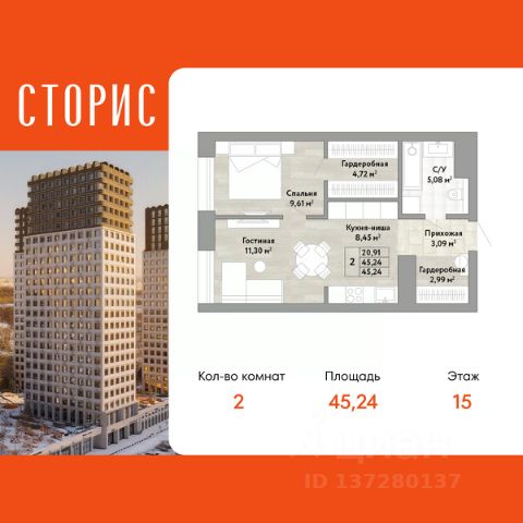 В жилом комплексе, расположенном по соседству с ландшафтным парком "Южное Бутово", продается 2-комнатная квартира площадью 51.20 кв. м. без отделки. Квартира расположена на 25 этаже 1 корпуса в жилом квартале комфорт-класса "Новые Смыслы" (ГК Unikey/Юникей). Доступная и удобная локация: - 10 минут ходьбы до станции метро "Потапово". - 25 минут ходьбы до станции метро "Бунинская аллея". - 15 минут на авто до Калужского шоссе. - 20 минут на авто до МКАД. - 30 минут на машине до аэропортов "Внуково" и "Остафьево". Продуманный архитектурный проект: - Разноуровневые секции с эстетичные башнями и контрастными цветовыми сочетаниями, напоминающими башни в Сити. - Сказочные виды из окон на современный район столицы. - Авторские планировки с потолками в 3 метра, просторными кухнями-гостиными и мастер-спальнями. - Комфортные бесплатные общественные пространства. - Подземный паркинг с прямым доступом на лифте. - Настоящий лес с живописными пейзажами и прудом прямо во дворе. Расположение Комплекс "Новые Смыслы" расположится в благоприятном районе Новой Москвы - Коммунарка. Зеленое окружение, богатая инфраструктура развивающегося района - все это сформирует особое пространство для комфортной жизни, наполненной смыслом. 10 минут на велосипеде - и вы в ландшафтном парке "Южное Бутово" или сквере у Потаповских прудов. Чуть дальше расположен Бутовский лесопарк. В окружении "Новых Смыслов" вы найдете все необходимые социальные объекты. В двух шагах от дома находится 5 школ, более десятка детских садов, секции для занятий малышей и подростков, частные клиники, супермаркеты, рестораны, студии красоты и фитнес-центры. За 12 минут на авто вы доберетесь до ледовой арены, комплекса "Спорт Станция" и спа-центра "Termoland". Внутренняя инфраструктура Для жителей "Новых Смыслов" будут созданы бесплатные общественные пространства: - Деловая гостиная с эстетичным коворкингом и переговорными. - Гостиная для души и тела, включающая фитнес-зону с тренажерами и пространства для стретчинга, йоги и медитаций. - Гостиная детства, где дети будут играть и развиваться под присмотром тьютора. - Кино-гостиная - кинотеатр на крыше одного из домов, предлагающий разнообразную программу. - Прачечная, работающая только для жильцов. Вместе с корпусами комплекса на территории запланировано строительство детского сада. На первых этажах корпусов откроются кофейни, пекарни, сервисы быта и пункты доставки. Благоустройство Чтобы отдохнуть от суеты города, достаточно выйти во двор: здесь раскинулся настоящий лес с живописными пейзажами. В тени деревьев жителей ждут пруд с мостиком и беседкой на берегу, тихие прогулочные аллеи, спортивная площадка и зоны для занятий йогой и бадминтоном на свежем воздухе. Юных жителей порадуют современные детские площадки, жукарий и специальное пространство для подвижных игр. Безопасность на территории гарантирована: двор огорожен от машин и оснащен камерами видеонаблюдения.