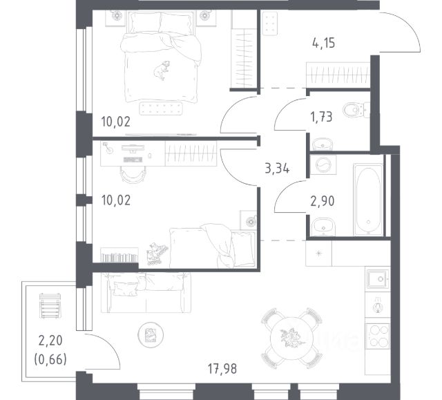 В продаже 2-комнатная квартира в корпусе 4.1 ЖК 'Весна в Заречье'. Квартира располагается на 13 этаже, общая площадь 65.73 м2.