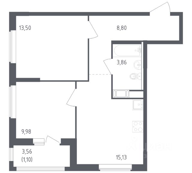 В продаже 2-комнатная квартира в корпусе 13 ЖК 'Эко Бунино'. Квартира располагается на 11 этаже, общая площадь 49.21 м2.