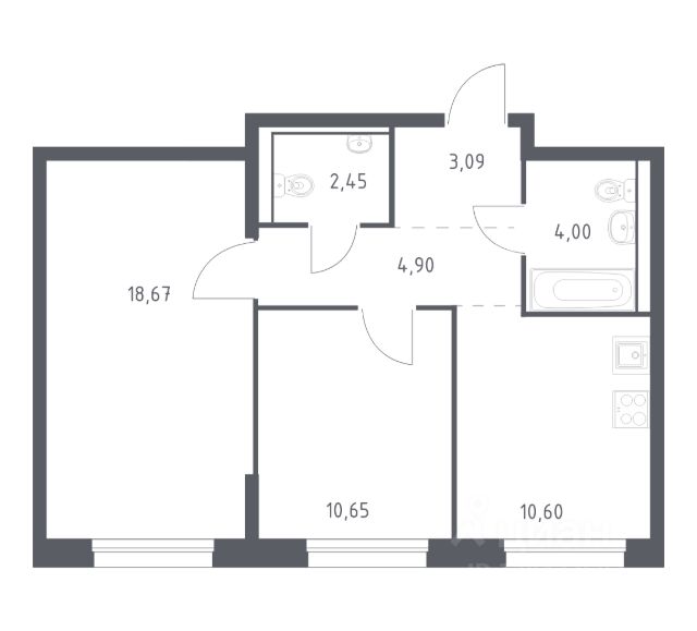 В продаже 2-комнатная квартира в корпусе 6-7 ЖК 'Живи! В Рыбацком'. Квартира располагается на 3 этаже, общая площадь 49.5 м2.