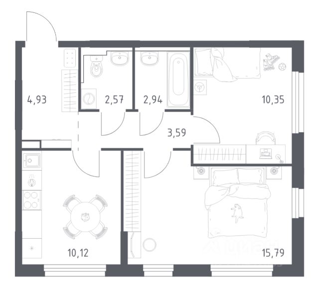 В продаже 2-комнатная квартира в корпусе 1.2 ЖК 'Квартал Торики'. Квартира располагается на 3 этаже, общая площадь 54.98 м2.