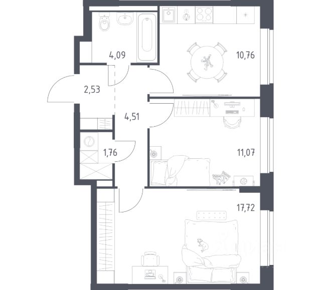 В продаже 2-комнатная квартира в корпусе 1 ЖК 'Квартал Домашний'. Квартира располагается на 16 этаже, общая площадь 53.4 м2.