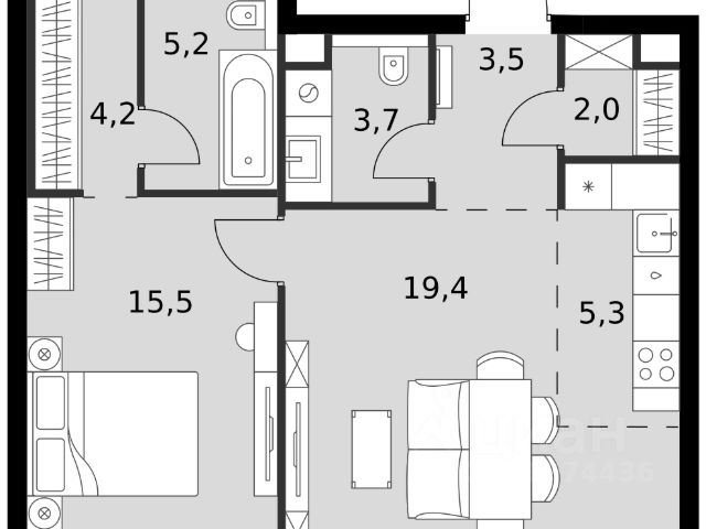 Прямая продажа от застройщика! Успейте забронировать квартиру до повышения стоимости! Жилой Комплекс премиум-класса. Продаётся 2-к квартира номер 1296 общей площадью 45.6 кв.м. на 53-м этаже 57 этажного здания. Без отделки. Цена с учётом скидки. Особенности квартиры: - Организуем показ в удобное для вас время! - Мастер-зона с санузлом и гардеробной. Всё для вашего комфорта и удобства, включая личный санузел и гардероб. - Просторная спальня, в которой можно разместить большую кровать. - Линейная планировка - максимальная функциональность и удобство. - Увеличенная ширина окна/окон - больше света и визуального простора. - Увеличенная высота окна - больше воздуха и света. - Гостевой санузел - комфорт и удобство для ваших гостей. - Ниша под стиральную машину - удобство и экономия пространства. - Евроформат - просторное и удобное жилье с отличной планировкой. - Гибкая планировка - создайте пространство по своему вкусу. - Место для игры/занятия спортом - идеальное пространство для активных детей. - Линейная кухня - функциональность и практичность в одном решении. - Проходная кухня-гостиная - идеальное пространство для общения и готовки. - Гардеробная - удобство для хранения и организации вещей. - Ниша под шкаф - компактное и удобное место для вещей. Квартира без отделки. Чистый холст для воплощения интерьера вашей мечты. Информация о комплексе: ЖК "Амбер Сити" - вдохновляющий квартал у Москва-Сити с архитектурой мирового уровня. Здесь кипит жизнь 24/7: парки, инфраструктура и виды на центр без городской суеты. Самодостаточная среда для работы, творчества и семьи в духе лучших районов Нью-Йорка и Гонконга. Транспортная доступность: Квартал с исключительной транспортной доступностью: ключевые точки Москвы в 15-20 минутах. Полное погружение в деловую и культурную жизнь столицы с минимальными затратами времени на дорогу. Общественный транспорт: - Метро "Беговая" - 5 минут пешком - Остановка "2-й Хорошёвский проезд" - 3 минуты пешком - Метро "Звенигородская" (строящаяся) - 10 минут пешком На автомобиле: - Москва-Сити - 10 минут - Звенигородское шоссе - 3 минуты - ТТК - 5 минут - Серебряный бор - 8 минут - Садовое кольцо - 12 минут - Кремль - 20 минут - Шереметьево - 40 минут Внутренняя инфраструктура: ЖК "Амбер Сити": многоуровневый ландшафт на 6 гектарах с зелёным бульваром, объединяющим арт-объекты, водные зоны и архитектурные формы. В закрытых дворах на стилобате - детские площадки с сенсорными элементами, зоны отдыха с креслами и настилами для йоги. Навесы с подогревом и зарядками для зимнего сезона. Активности на любой вкус: настольный теннис, петанк, чтение в тишине на оборудованных скамейках. Продуманное пространство для ежедневного отдыха и игр детей и взрослых.