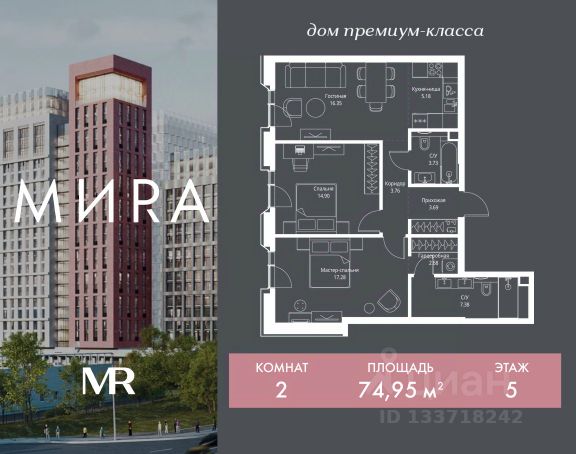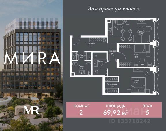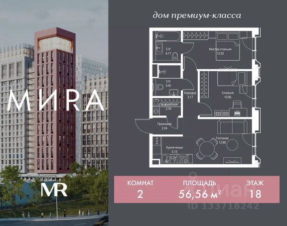 Прямая продажа от застройщика. Продаётся 2-комнатная квартира общей площадью 54.24 м² без отделки в доме премиум-класса МИRА на 5-м этаже 24 этажного дома. Квартира расположена в корпусе 3. Дом премиум-класса МИRA это: • Спокойный район с богатой историей и сложившейся инфраструктурой • Авторская архитектура на стыке классики и современности • Вход в парк прямо из жилого комплекса • Панорамные виды на Яузу, парки, ВДНХ и скульптуру "Рабочий и колхозница" • Удобные сервисы и безопасность для каждого резидента Расположение: Жилой квартал расположен в Алексеевском районе на северо-востоке Москвы, на второй линии домов, таким образом вы сможете дистанцироваться от шума и суеты проспекта Мира, но при этом будете жить недалеко от этой важной городской магистрали. Прямо у дома: • Парк Акведук • Река Яуза • Памятник "Рабочий и колхозница" Пешком: • 16 мин м. ВДНХ На автомобиле: • 12 мин ТТК • 15 мин Садовое кольцо • 12 мин Национальный парк "Лосиный остров" Благоустройство: Концепция благоустройства от бюро "ДРУЖБА" разработана в стиле "Лесная тропа". В уютном дворе расположились словно затерянные в лесу, площадки для отдыха. Они разделяются островками с травами, кустарниками, крупными камнями и деревьями, между которыми проходят узкие песчаные тропинки с деликатной подсветкой по вечерам. Центральной точкой притяжения для жителей станет главная площадь с фонтаном, которая открывается сразу из двух входных групп. Внутренний двор МИRA: • Детская площадка с зонами для игр малышей до трех лет и детей более старшего возраста • Спортивная площадка с профессиональным оборудованием для тренировок • Декоративные перголы • Воздушный арт-объект с подсветкой, похожий на облако • Чайный домик, где в отдельном отапливаемом павильоне можно в любое время года попить кофе с соседями или устроить камерное семейное чаепитие • Зоны для работы и отдыха с гамаком под навесом, скамейками и креслами Инфраструктура и окружение: В Алексеевском районе есть огромные благоустроенные парки, магазины, гимназии с высоким рейтингом и филиалы ВУЗов, частные и государственные детские сады, модные кофейни и фитнес-центры. В квартале МИRА предусмотрены: • 2 ресторана с видом на парк Акведук • 3 кафе • фитнес-студия • подземный паркинг на 330 машино-мест Компания MR предлагает своим клиентам специальные условия приобретения квартир в рамках программ ипотечного кредитования от банков-партнеров. Продается 2-комнатная квартира от застройщика в районе Алексеевский в Москве.