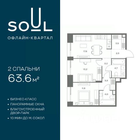 Цены указаны с условием 100% оплаты и стандартной ипотеки. Прямая продажа от застройщика! Продается 2-к. квартира номер 373 общей площадью 63.6 кв.м. на 4-м этаже 18 этажного дома, Корпус 8. Без отделки. Проект бизнес-класса SOUL от девелопера FORMA. До метро Сокол 10 мин пешком. Архитектура от британского бюро SimpsonHaugh. Благоустройство дворов — Gillespies и GAFA. Территория состоит из культурного парка и приватных дворов. Озеленение в эстетике лесного оазиса. Насыщенное благоустройство: прогулочные тропинки, релакс-зоны, пряный и сенсорный сады, развивающие детские площадки и воркауты. В центре проекта объект культурного наследия — общественное пространство Изофабрика, построенная в 30-х годах по проекту архитектора Георгия Гольца. Здесь будут располагаться мастерские для взрослых и детей, выставочные залы, коворкинги, образовательный центр, рестораны и кафе. Квартиры с панорамными окнами, мастер-спальнями, гардеробными, классическими балконами и лоджиями, видовыми террасами. Высота потолков от 2,9 до 3,5 м. В проекте 2 детских сада на 100 и 200 малышей. Клубная гостиная, фитнес-рум, детская игровая комната, дизайнерские лобби, подземный паркинг и келлеры.