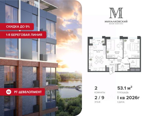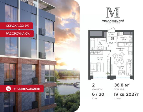 Рассрочка 0% + Скидка 5% на готовые квартиры. Компания "РГ-Девелопмент" запускает комфортную программу рассрочки на квартиры в построенных корпусах. Предложение распространяется на квартиры со свободной планировкой в построенном корпусе 3. Условия: - Скидка 5% - Первый платеж — от 30% от стоимости объекта. - Оставшаяся сумма выплачивается не позднее 31.03.2026. Идет выдача ключей. Продаётся 2-к квартира 58,1 кв.м. в ЖК "Михалковский" на 2-м этаже 20 этажного дома. Скидка 9% при покупке квартиры! Цена указана с учетом максимального размера скидки. Ипотека для каждого! Полная стоимость кредита от 12,380% до 18,537%. Ставка от 0,11% в АО "Альфа-Банк", ген. лицензия ЦБ РФ 1326 от 16.01.2015. Ставка фиксируется на первые 12 месяцев, далее полная стоимость кредита от 22,022% до 24,599% ставка 21,59%. Первоначальный взнос — от 20,1% от стоимости квартиры. Срок кредитования — от 4 до 30 лет. Компания "РГ-Девелопмент" предоставляет скидку на квартиры в жилом комплексе. Акция действительна до 31.03.2026 включительно. Чтобы воспользоваться предложением, необходимо подписать договор на приобретение недвижимости до 31.03.2026 включительно. Действует программа "Растет семья - растет и квартира". Компания "РГ-Девелопмент" вошла в ТОП-10 девелоперов по объёму введённого жилья в "Старой Москве" по итогам 2025 года. Прямая продажа от застройщика! Квартиры без отделки. Срок сдачи корпуса - 3 кв. 2024 г. Особенности проекта: Завораживающие виды Красивое благоустройство Уникальная локация для Москвы (рядом Головинский парк, пруды, усадьба Михалково) Рядом с центром В проекте присутствует: архитектура голландского бюро MLA+, зеленые зоны, транспортная доступность, благоустроенная территория, подземный паркинг, детский сад и выход на Головинский парк с пятью прудами. Название комплекса указывает на одну из его черт - соседство с имением Михалково. Позвольте себе жить в месте, где проводили свой досуг династии Дашковых и Паниных. 2-комнатная квартира от застройщика в районе Головинский в Москве.