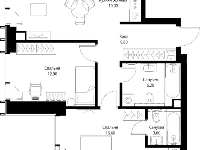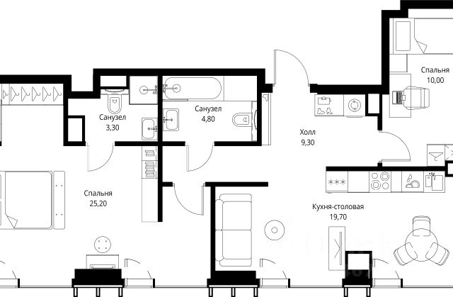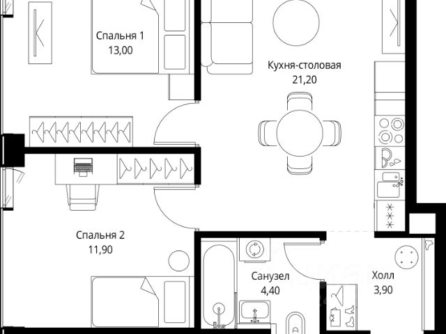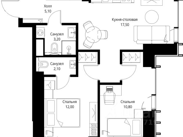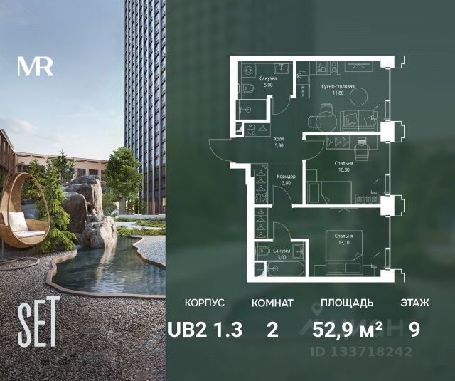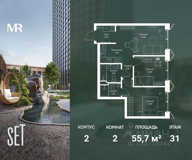 Прямая продажа от застройщика. В ЖК SET продается 2-комнатная квартира площадью 63.20 м², расположенная в корпусе 2, на 36 этаже 59 этажного дома. SET имеет стратегически выгодное расположение в ЗАО, в районе с большой историей и блестящим будущим: между природной зоной долины реки Сетунь и Кутузовским проспектом. В рамках возведения первой очереди предусмотрено три корпуса высотой 18, 45 и 59 этажей. На верхних этажах спроектированы общедоступные смотровые площадки с панорамным обзором на центр столицы. Преимущества проекта: • Функциональные планировочные решения • Контроль проникновения через входную дверь • Система управления освещением и температурой в квартире • Система защиты от протечек с функцией перекрытия воды • Вход в подъезд по биометрическим считывателям Face ID • Скоростные лифты • Двухуровневый подземный охраняемый паркинг на 495 машино-мест Застройка SET включает в себя не только жилые корпуса, но и инфраструктурные объекты. Все необходимое для повседневного комфорта будет расположено в шаговой доступности: • Фитнес-клуб с бассейном • Ведущая городская школа, детский сад и школа искусств • Центр культуры и досуга • Медицинский центр • Кафе и рестораны Расположение комплекса: Пешком: • Метро "Давыдково" - 17 минут • Парк "Долина реки Сетунь" - 3 минуты • Открытие новых станций метро в шаговой доступности в будущем Инфраструктура: Разнообразить свой день резиденты VEER смогут также проводя больше времени на свежем воздухе. Двор разделен на 4 зоны разных эмоций и действий, которые пересечены и соединены веерными прогулочными маршрутами: • Спортивная площадка устроена в глубине ""Кленовой рощи"" • В ""Чайном домике"" будет создан навес с утеплением для отдыха в любую погоду • Площадки для детей воплотятся в ""Волшебный лес"" с цветами, зеркалами и световым дизайном • ""Центральная площадь"" устроена у водного оазиса живописного пруда. " На машине: • "Москва-Сити" - 15 минут • Садовое кольцо - 20 минут • ТЦ "Океания" - 8 минут • ТЦ "Времена года" - 13 минут • Сколково - 12 минут • Гребной канал - 17 минут Компания MR предлагает своим клиентам специальные условия приобретения квартир в рамках программ ипотечного кредитования от банков-партнеров.