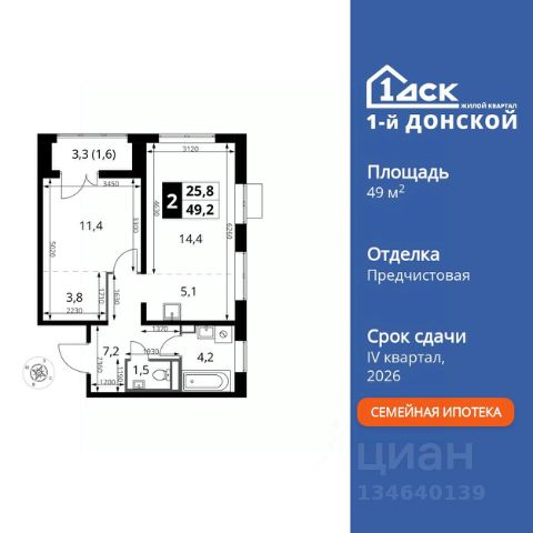 Прямая продажа от застройщика! Жилой Комплекс класса Комфорт Плюс. Продаётся 2-к квартира номер 529 общей площадью 49.2 кв.м. на 6-м этаже 24 этажного здания. Отделка Whitebox. Особенности квартиры: - МЦД-5 в пешей доступности - Квартал с собственной набережной - Свои 2 детских сада и школа - Мастер-зона с гардеробной. Просторное место для отдыха и удобного хранения вещей. - Угловая планировка - больше пространства для ваших идей. - Окно в ванной - натуральное освещение для уюта и комфорта. - Увеличенное количество окон - дополнительное освещение и свежий воздух. - Евроформат - просторное и удобное жилье с отличной планировкой. - Возможность добавить спальное место - дополнительный комфорт для гостей. - Гардеробная - удобство для хранения и организации вещей. - Лоджия - уютное место для отдыха и тишины. Квартира с предчистовой отделкой (White box). Вам не придется заниматься черновыми и трудоёмкими работы, а чистовую отделку и дизайн - сделайте на свой вкус. Информация о комплексе: Комплекс 1-й Донской расположен в 7 км от МКАД по трассе М-4 Дон. В нем сочетаются все плюсы комфортной городской среды и природного окружения. В проекте достаточно большой процент квартир, выходящих на 2-3 стороны света. Секции-маяки формируют у зданий визуальную L-форму, что придает застройке структуру и ритмику объемов. На ощущение динамики работает и разная этажность зданий. Теплая цветовая палитра фасадов отражает природу Дона. Вечерами дома преображаются благодаря архитектурной подсветке, выгодно выделяясь на городском фоне. Природа оказывает положительное влияние на человека на всех уровнях восприятия: через зрение, запахи, звуки, тактильные ощущения. Неподалеку от ЖК Первый Донской: Ермолинский парк, Видновский лесопарк, Жуковский парк Транспортная доступность: Комплекс удобно расположен в 7 км от МКАД по трассе М-4 Дон (через Видное). Расстояние до Каширского шоссе составляет 12 км. Добраться до метро и центра Москвы позволяет развитая сеть маршрутов общественного наземного транспорта. Действующая ж/д станция Калинина Павелецкого направления в 15-17 минутах ходьбы (МЦД-5 в 2025-2026 гг). Внутренняя инфраструктура: Проект 1-й Донской соседствует с бурно развивающимся районом, основная инфраструктура которого уже сложилась. В строительстве современных жилых комплексов в округе есть свои плюсы: здесь формируется продуманная и комфортная городская среда. Что касается внутренней инфраструктуры, на территории квартала будут расположены собственные муниципальные 2 детских садика и школа, которые помогут совместить приятное с полезным. Территория комплекса пронизана целой сетью живописных пешеходных маршрутов, позволяющих попасть в любой уголок района. Основные пути, как водится, "торговые". Они проходят вдоль магазинов, кафе и других представителей коммерции и отделяются от проезжей части зеленой "фито" - стеной. Среди крупных социальных объектов предусмотрены своя поликлиника и торговый центр с примыкающей площадью для общ