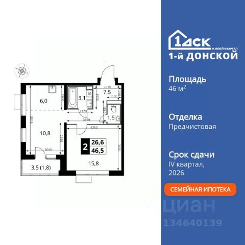 Прямая продажа от застройщика! Жилой Комплекс класса Комфорт Плюс. Продаётся 2-к квартира номер 752 общей площадью 46.5 кв.м. на 3-м этаже 24 этажного здания. Отделка Whitebox. Особенности квартиры: - МЦД-5 в пешей доступности - Квартал с собственной набережной - Свои 2 детских сада и школа - Угловая планировка - больше пространства для ваших идей. - Увеличенное количество окон - дополнительное освещение и свежий воздух. - Евроформат - просторное и удобное жилье с отличной планировкой. - Ниша под шкаф - компактное и удобное место для вещей. - Лоджия - уютное место для отдыха и тишины. Квартира с предчистовой отделкой (White box). Вам не придется заниматься черновыми и трудоёмкими работы, а чистовую отделку и дизайн - сделайте на свой вкус. Информация о комплексе: Комплекс 1-й Донской расположен в 7 км от МКАД по трассе М-4 Дон. В нем сочетаются все плюсы комфортной городской среды и природного окружения. В проекте достаточно большой процент квартир, выходящих на 2-3 стороны света. Секции-маяки формируют у зданий визуальную L-форму, что придает застройке структуру и ритмику объемов. На ощущение динамики работает и разная этажность зданий. Теплая цветовая палитра фасадов отражает природу Дона. Вечерами дома преображаются благодаря архитектурной подсветке, выгодно выделяясь на городском фоне. Природа оказывает положительное влияние на человека на всех уровнях восприятия: через зрение, запахи, звуки, тактильные ощущения. Неподалеку от ЖК Первый Донской: Ермолинский парк, Видновский лесопарк, Жуковский парк Транспортная доступность: Комплекс удобно расположен в 7 км от МКАД по трассе М-4 Дон (через Видное). Расстояние до Каширского шоссе составляет 12 км. Добраться до метро и центра Москвы позволяет развитая сеть маршрутов общественного наземного транспорта. Действующая ж/д станция Калинина Павелецкого направления в 15-17 минутах ходьбы (МЦД-5 в 2025-2026 гг). Внутренняя инфраструктура: Проект 1-й Донской соседствует с бурно развивающимся районом, основная инфраструктура которого уже сложилась. В строительстве современных жилых комплексов в округе есть свои плюсы: здесь формируется продуманная и комфортная городская среда. Что касается внутренней инфраструктуры, на территории квартала будут расположены собственные муниципальные 2 детских садика и школа, которые помогут совместить приятное с полезным. Территория комплекса пронизана целой сетью живописных пешеходных маршрутов, позволяющих попасть в любой уголок района. Основные пути, как водится, "торговые". Они проходят вдоль магазинов, кафе и других представителей коммерции и отделяются от проезжей части зеленой "фито" - стеной. Среди крупных социальных объектов предусмотрены своя поликлиника и торговый центр с примыкающей площадью для общественных мероприятий. Уют начинается с продуманного подъезда. Сквозные подъезды наполнены светом благодаря сплошному остеклению. Вход в них есть и с улицы, и со двора.