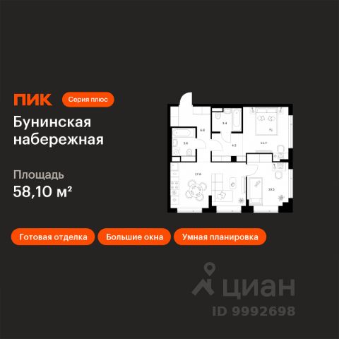 В жилом комплексе, расположенном по соседству с ландшафтным парком "Южное Бутово", продается 2-комнатная квартира площадью 51.20 кв. м. без отделки. Квартира расположена на 25 этаже 1 корпуса в жилом квартале комфорт-класса "Новые Смыслы" (ГК Unikey/Юникей). Доступная и удобная локация: - 10 минут ходьбы до станции метро "Потапово". - 25 минут ходьбы до станции метро "Бунинская аллея". - 15 минут на авто до Калужского шоссе. - 20 минут на авто до МКАД. - 30 минут на машине до аэропортов "Внуково" и "Остафьево". Продуманный архитектурный проект: - Разноуровневые секции с эстетичные башнями и контрастными цветовыми сочетаниями, напоминающими башни в Сити. - Сказочные виды из окон на современный район столицы. - Авторские планировки с потолками в 3 метра, просторными кухнями-гостиными и мастер-спальнями. - Комфортные бесплатные общественные пространства. - Подземный паркинг с прямым доступом на лифте. - Настоящий лес с живописными пейзажами и прудом прямо во дворе. Расположение Комплекс "Новые Смыслы" расположится в благоприятном районе Новой Москвы - Коммунарка. Зеленое окружение, богатая инфраструктура развивающегося района - все это сформирует особое пространство для комфортной жизни, наполненной смыслом. 10 минут на велосипеде - и вы в ландшафтном парке "Южное Бутово" или сквере у Потаповских прудов. Чуть дальше расположен Бутовский лесопарк. В окружении "Новых Смыслов" вы найдете все необходимые социальные объекты. В двух шагах от дома находится 5 школ, более десятка детских садов, секции для занятий малышей и подростков, частные клиники, супермаркеты, рестораны, студии красоты и фитнес-центры. За 12 минут на авто вы доберетесь до ледовой арены, комплекса "Спорт Станция" и спа-центра "Termoland". Внутренняя инфраструктура Для жителей "Новых Смыслов" будут созданы бесплатные общественные пространства: - Деловая гостиная с эстетичным коворкингом и переговорными. - Гостиная для души и тела, включающая фитнес-зону с тренажерами и пространства для стретчинга, йоги и медитаций. - Гостиная детства, где дети будут играть и развиваться под присмотром тьютора. - Кино-гостиная - кинотеатр на крыше одного из домов, предлагающий разнообразную программу. - Прачечная, работающая только для жильцов. Вместе с корпусами комплекса на территории запланировано строительство детского сада. На первых этажах корпусов откроются кофейни, пекарни, сервисы быта и пункты доставки. Благоустройство Чтобы отдохнуть от суеты города, достаточно выйти во двор: здесь раскинулся настоящий лес с живописными пейзажами. В тени деревьев жителей ждут пруд с мостиком и беседкой на берегу, тихие прогулочные аллеи, спортивная площадка и зоны для занятий йогой и бадминтоном на свежем воздухе. Юных жителей порадуют современные детские площадки, жукарий и специальное пространство для подвижных игр. Безопасность на территории гарантирована: двор огорожен от машин и оснащен камерами видеонаблюдения.