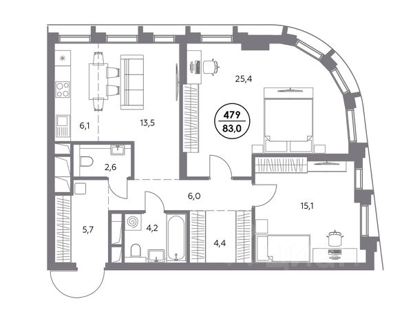 В премиум-квартале "Дом 56" на Бауманской напрямую от девелопера ГК "Галс-Девелопмент" представлена 2-комнатная квартира на 18 этаже общей площадью 72.50 м². Квартира предлагается без отделки, со свободной планировкой. Пространство позволяет воплотить дизайн - проект в соответствии с Вашими предпочтениями. "Дом 56" - расположен в Басманном районе на ул. Фридриха Энгельса, всего в 12-15 минутах пешком от станций метро "Бауманская" и "Электрозаводская". Рядом с премиум-кварталом находятся важные городские магистрали - ТТК, набережная реки Яузы и Бакунинская улица, переходящая в Спартаковскую и Маросейку. Архитектурный стиль "Дома 56" - параметрический минимализм. Футуристические фасады квартала с "эффектом закручивания" словно вращаются вокруг своей оси. Динамичный образ башен дополняет эффектное остекление - окна в пол будут в каждой квартире. "Дом 56" станет органичным продолжением современной научно-креативной среды Басманного района: - Развитое окружение - десятки различных точек притяжения; - Близость престижных вузов: МГТУ, МЭИ и Британская высшая школа дизайна; - Соседство с Технологической долиной и всем необходимым для запуска стартапа; - Набережные и парки для спорта и отдыха. "Дом 56" оснащён первоклассными инженерными системами. Входы на территорию, в здание и паркинг оборудованы системой контроля и управления доступом. С любого этажа в лобби и паркинг спускаются быстрые и бесшумные лифты премиального бренда. Во внутреннем приватном дворе будет создано пространство в бионическом стиле с лаунж-зонами, подвесными качелями, детскими плейхабами для разных возрастов, площадками для спорта и отдыха в окружении зелени. На двух подземных уровнях предусмотрен подземный паркинг и кладовые помещения.