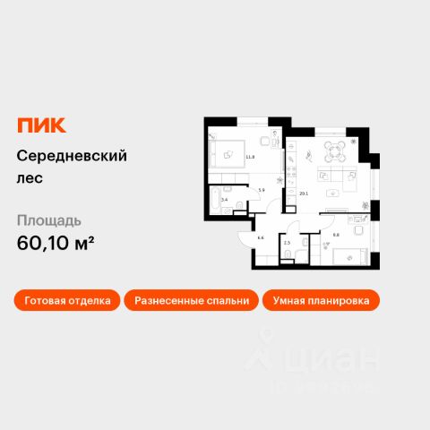 Продается двухкомнатная квартира без отделки в 9 фазе города-парка "Первый Московский". Общая площадь квартиры - 55,5 кв. м, этаж 16 из 19. Срок сдачи - 4 квартал 2026 года. Тип дома - монолитный. Цена указана при 100% оплате. Новый корпус состоит из 2х секций, без отделки. Город-парк "Первый Московский" расположен всего в 7 км по Киевскому шоссе (Новая Москва). Из города-парка прямой выезд на Киевское шоссе и трассу Солнцево-Бутово-Варшавское шоссе. ТРАНСПОРТНАЯ ДОСТУПНОСТЬ: - 5 мин. на личном автомобиле или 10 мин. на автобусе 189, 147, 193 до станции метро "Филатов Луг" - 5 мин. на личном автомобиле или 12 мин. на автобусе 863 до станции метро "Саларьево" - 6 мин. на личном автомобиле или 15 мин. на автобусе 333 до станции метро "Рассказовка" РАЗВИТАЯ ИНФРАСТРУКТУРА В ОКРУЖЕНИИ: - общеобразовательная школа 2120 корпуса д1, д7, ш1-ш5 - детский сад 2120 корпуса д2, д9 - школа искусств - городская больница, детская поликлиника, филиал 5 - подстанция скорой помощи 58 и пожарно-спасательный центр 313 - отдел полиции, отдел ГИБДД - торговые центры Столица и Новомосковский - стадион, каток, бассейн - кафе, продуктовые магазины, аптеки, фитнес центры, салоны красоты и пр. БЛАГОУСТРОЙСТВО: - детская площадка для малышей и детей до 12 лет - места отдыха для родителей в непосредственной близости - озеленение территории с учетом зонирования - максимальная близость корпуса к пару Филатов луг ОСОБЕННОСТИ АРХИТЕКТУРЫ: - безбарьерные входные группы - колясочные в каждой входной группе - коммерческие помещения на 1 этаже в двух секциях - кладовые помещения расположены на жилых этажах и на -1 этаже - в каждой секции корпуса по 3 лифта: 2 пассажирских, 1 грузовой - на фасадах предусмотрены корзины для установки внешних блоков кондиционеров - видеонаблюдение установленное в холлах первых этажей, у подъездов и прилегающей территории АВТОРСКИЙ ДИЗАЙН: Входные группы выполнены по авторскому дизайну, оснащены системой "тёплый пол". В каждой входной группе будет располагаться комфортабельная зона ожидания, почтовые ящики с ячейкой для спама, колясочная, акцентные пуфы и столик.