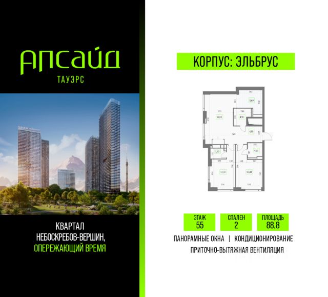 Продаётся 2-комнатная квартира площадью 58.13 кв.м на 3 этаже 46 этажного корпуса Монте Бьянко в квартале небоскребов "Апсайд Тауэрс". В квартире предчистовая отделка, c видом на Звездный бульвар, Ольгинский храм, корпус Эверест. Номер квартиры Г0306. На первых этажах корпуса Монте Бьянко разместятся: фитнес студия, салон красоты, центр превентивной медицины, образовательные классы, книжный магазин, аптека, фермерская лавка, а также келлеры для хранения сезонных вещей. В приватном закрытом дворе разместятся разнообразные площадки для прогулок, игр и отдыха. Визитной карточкой двора станет уникальная биометрическая игровая пещера со сказочными тоннелями, горками и космическими "мягкими" камнями с неизведанных планет. Планету Земля дети смогут исследовать в павильоне круглый год: объемная крыша укроет от солнца и дождя. Игровая пещера будет реализована в стиле "эмоциональная архитектура". "Апсайд Тауэрс" - технологичный квартал строится в динамично развивающемся Бутырском районе, в 3 мин. от метро, в 5 мин. от ТТК. На территории 7 га возводится 5 высотных башен от 19 до 58 этажей, названных в честь главных вершин земли. Квартиры с панорамными окнами в пол, высокими потолками и современными инженерными решениями. В проекте: - приточновытяжная вентиляция (воздух по качеству не уступает горному); - пятиступенчатая очистка воды с сохранением полезных минералов; - центральное кондиционирование; - внутрипольные конвекторы; - системы безопасности и мониторинга микроклимата; - высокоскоростной интернет на всей территории; - подземный паркинг с зарядками для электрокаров. Социальная инфраструктура: - Upside Клуб (более 2 000 м²) — спацентр на 47м этаже башни "Атлас" (джакузи, сауна, залы для релаксации и йоги), барбекюпатио, гостиная с камином и роялем, коворкинг, переговорные, домашний кинотеатр и др.; - смотровые террасы с видами на город, парки, Останкинскую башню, ВДНХ, Ботанический сад и МосквуСити; - ландшафтный парк 2,5 га с сенсорным садом, игровыми и спортивными площадками; - государственная школа и детский сад; - более 15 000 м² коммерческой инфраструктуры. Бутырский район развивается и станет новым деловым районом Москвы. По программе "Индустриальные кварталы" на территории Огородного проезда построят образовательные и спортивные учреждения, торговые центры, кафе, банки и общественноделовые здания. Рядом — Парк Останкино, ВДНХ, Сокольники, Гончаровский парк, дизайнзавод Flacon и "Хлебозавод". До центра Москвы на авто — 15 мин. Застройщик: ООО "СЗ "КДевелопмент" (Upside Девелопмент).