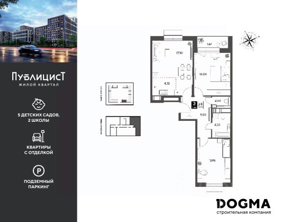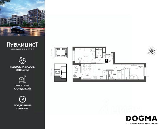 Продаётся 2-комнатная квартира в строящемся доме (Корпус 4), срок сдачи: IV-кв. 2026, общей площадью 61.9 кв.м., на 12 этаже. Расположение, транспортная доступность