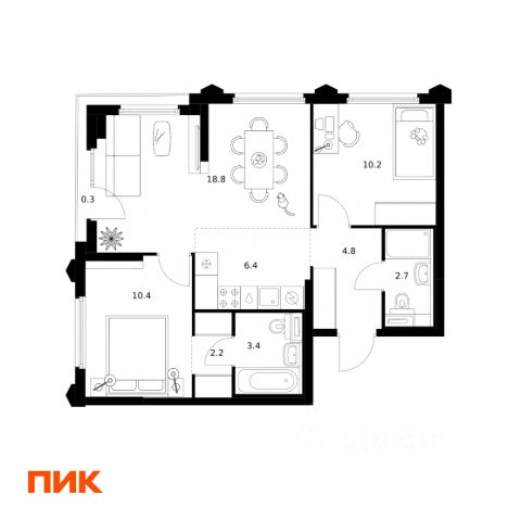 Продаётся 2-комн. квартира площадью 59,2 кв.м на 13 этаже 32 этажного дома (Корпус 22.1, Секция 1) проекта ПИК Бусиновский парк. Светлый просторный подъезд на уровне земли, функциональная планировка, большие окна, c отделкой. "Бусиновский парк" расположен на севере Москвы — в районе Западное Дегунино, в 20 минутах пешком от метро "Ховрино". Яркий и современный образ жилого квартала создают башни-доминанты — у каждой из них свой уникальный фасад, разработанный российскими архитектурными бюро. Проектом предусмотрены входы на уровне земли, без ступеней, порогов и пандусов — так удобнее и безопаснее. У подъездов будет два выхода: на улицу и во двор-парк. В наших дворах мы установим столы и лавочки со встроенными зарядными устройствами. Не нужно будет возвращаться домой, чтобы зарядить смартфон или ноутбук: можно весь день работать на свежем воздухе В проекте появится масштабное пространство площадью 4Га - MultiHub "Атлас". Для юных жителей появится большая игровая площадка с горными хребтами для лазания, ручьём золотоискателей, лесным фортом и песочной зоной для малышей. Дети смогут придумывать здесь бесчисленное количество игр независимо от своего возраста. Взрослые смогут отдохнуть в дождевом саду — это удивительное место, где после дождя появляются маленькие живописные озерца. Для спорта — уличные тренажёры, площадки для командных игр, столы для пинг-понга и шахмат. Владельцы собак оценят место для прогулок с питомцем. А специально для подростков мы спроектировали уникальное пространство для отдыха — памп-трек для катания, большой навес, амфитеатр и сетки для отдыха, где они смогут собираться вместе в любую погоду. В лобби "Бусиновского парка" будет удобная зона ожидания, где можно встретить друзей, курьера или дождаться такси, а также гостевая туалетная комната со столиком для пеленания. На территории проекта предусмотрены двухуровневый подземный и наземный паркинги. В паркингах установлены надёжные системы вентиляции, пожаротушения и круглосуточного видеонаблюдения. А ещё для наших паркингов мы разработали систему навигации, которая помогает быстро найти автомобиль. На подземных этажах "Бусиновского парка" предусмотрены вместительные кладовые. В них жители проекта смогут хранить сезонные и габаритные вещи, которые занимают много места в квартире. В корпусе 1.4 появится общественная терраса на 30-м этаже. Доступ сюда есть только у жителей, поэтому вы не встретите в этом пространстве посторонних людей. Здесь можно заниматься спортом, отдохнуть за чтением книги или создать собственный сад. А ещё отсюда открываются красивые виды на город. В "Бусиновском парке" предусмотрены квартиры с панорамным остеклением, различными балконами, эркерами, угловыми окнами и большим количеством окон — до пяти в одной комнате. В таких квартирах широкий угол обзора: можно пить кофе, наблюдая за жизнью на улице и наслаждаясь ощущением простора. Ещё больше комфорта придаст мягкий солнечный свет, который равномерно осветит всю квартиру. Артикул 953543 (Зас