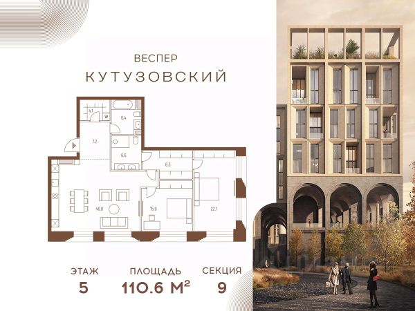 Продаётся 2-комнатная квартира общей площадью 45.80 м² на 11 этаже Жилого Комплекса Бадаевский. О нем говорили. Его ждали. Жилой комплекс "Бадаевский" на Кутузовском проспекте — это место для жизни, которое займет место в истории. Девелопер Capital Group. В "Бадаевском" исторические здания завода и футуристические "парящие" дома создают единый комплекс, который станет новой достопримечательностью и символом Москвы. Панорамное остекление, террасы и веранды дарят неординарные и захватывающие виды. Благодаря расположению домов и панорамному остеклению, жилые пространства в "Бадаевском" будут наполнены светом. А виды из окон домов-"лент" на Москву-реку, пивоваренный завод, небоскребы "Москва-Сити" и Белый дом дополнены принципиально новым ощущением высоты. На территории Бадаевского завода появится масштабный ландшафтный парк с концепцией "русский лес". Впервые в истории района Дорогомилово у жителей появится прямая связь набережной Тараса Шевченко с Кутузовским проспектом. Близость Москвы-реки добавляет к преимуществам "Бадаевского" природную энергетику и приятные прогулки на свежем воздухе. Подземная парковка позволит сделать территорию завода полностью пешеходной, а сам комплекс представит новый подход к организации открытого и уединенного пространства в центре Москвы. Расположение в начале Кутузовского проспекта делает проект не только престижным, но и удобным: до Третьего транспортного и Садового кольца можно доехать за 5 минут, а Кремль и основные исторические достопримечательности расположены в 15 минутах на автомобиле. Напротив "Бадаевского" находится офисный кластер "Москва-Сити". Для жителей комплекс будет создано не только новое масштабное благоустройство, но и вся необходимая инфраструктура. В исторических корпусах появятся магазины, бутики, кафе и рестораны, коворкинг и крафтовая пивоварня, а в зданиях элеваторов — русская баня. Кроме того, запланирован фермерский рынок и досуговый кластер с музыкальной студией, центром детского творчества и фитнес-центром с бассейном.