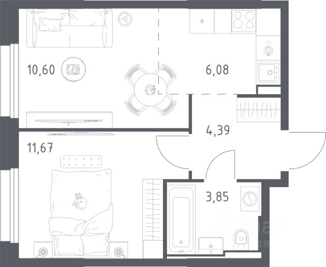 Продаётся 2-комнатная квартира 108, площадью 39,58 м², на 17 этаже в ЖК "Ильинойс" корпус 3. Стоимость — от 10464565 руб. Квартира без отделки, планировка односторонняя, окна на улицу.
