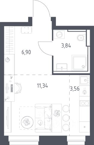 Продаётся 2-комнатная квартира 1574, площадью 35,48 м², на 2 этаже в ЖК "Ильинойс" корпус 3. Стоимость — от 10546511 руб. Квартира с отделкой, планировка односторонняя, окна на улицу.