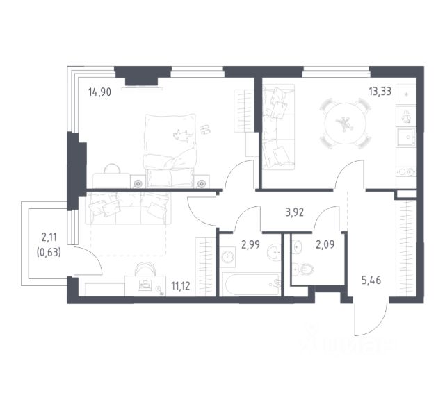 Квартира с кухней-гостиной и двумя спальнями в Квартале Герцена. Особенности планировки: предчистовая отделка. Квартиру можно купить онлайн. В квартире выполнена отделка "под чистовую". Установлены окна с двойным стеклопакетом, радиаторы с терморегуляторами. На полу цементно-песчаная стяжка. В квартиры заведены кабели для интернета и ТВ. Входная сейф-дверь не требует замены. Организован поквартирный учёт энергоресурсов (водоснабжение, отопление, электричество). Квартал "Герцена" расположен в Бирюлёве Восточном — районе на юге Москвы. Дорога до ТТК займет всего полчаса на автомобиле, до станции метро и ж/д станции "Царицыно" — 13 минут, а до автовокзала "Южные ворота" — 20 минут. До автобусных остановок можно дойти пешком. В 2027-2028 году откроется новая станция метро "Лебедянская", дорога до неё займет всего 18 минут. Общая площадь "Квартала Герцена" составляет 27,3 га. Дома состоят из разноуровневых секций высотой от 6 до 55 этажей с видовыми террасами и балконами. На территории квартала будет построена поликлиника, детский сад на 350 мест и воспитательно-образовательный комплекс на 1075 мест, а также рестораны, клиники, магазины и салоны красоты. Объявление от застройщика. Ипотека, материнский капитал. Обмен — один из способов покупки. Обмен подойдёт, если вы хотите быстро поменять старую квартиру на новую. Получить ипотеку или рассрочку, а также обменять квартиру можно онлайн. Запишитесь на онлайн-презентацию по телефону или на сайте. квартиры в нашей базе: ГРЦ01.2-Ж2.9.1.