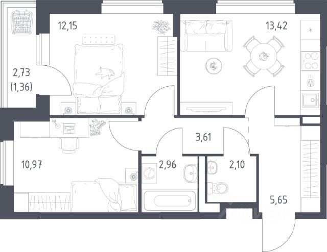 Продаётся 2-комнатная квартира в строящемся доме (Корпус 10.2), срок сдачи: II-кв. 2026, общей площадью 55.53 кв.м., на 16 этаже. Расположение, транспортная доступность Жилой комплекс "Прибрежный Парк" возводится на берегу реки Пахра, рядом с деревней Павловское и селом Ям, в 9 км от МКАД. Рядом проходят Каширское шоссе и трасса М-4, по которой до центра Москвы можно доехать всего за 15 минут. В десяти минутах ходьбы располагается ж/д станция "Ленинская", от которой за 40 минут можно добраться на электричке до Павелецкого вокзала. В 2024 году эта станция станет частью МЦД-5. Путь до ближайшей станции метро "Домодедовская" на общественном транспорте займёт примерно полчаса. Инфраструктура Внутренняя инфраструктура ЖК "Прибрежный Парк" будет включать три детских сада на 800 мест, школу на 1650 учеников и собственную поликлинику. На первых этажах зданий разместятся коммерческие помещения - магазины, аптеки, салоны красоты, досуговые центры. На территории комплекса будет построен всесезонный плейхаб "Волна" со скалодромом, горками, качелями, песочницами и тематическим дизайном, который подойдёт детям самых разных возрастов. Одна из главных идей этого проекта - близость к природе. Комплекс находится на берегу живописной реки, в непосредственной близости с крупными лесными массивами и музеем-заповедником "Горки Ленинские", где проходят тематические выставки и экскурсии. В ближайших сёлах и деревнях работают супермаркеты, разнообразные магазины и кафе. Крупные торговые центры и гипермаркеты находятся не слишком далеко. До гипермаркета "Лента" - 8 км, до ТЦ "Вегас" - 11 км. Надежность застройщика Проект реализует созданная в 2009 году группа "Самолет". Это крупная и хорошо известная компания, занимающая второе место по объемам сдачи недвижимости в Москве и Подмосковье. Девелопер возводит жилые комплексы комфорт-класса, квартиры в которых практически всегда сдаются с полной чистовой отделкой. В крупных проектах группы "Самолет" всегда есть необходимая инфраструктура: школы, детские сады, поликлиники. Социальные объекты компании отличаются оригинальным дизайном, современным техническим оснащением и повышенным уровнем комфорта. На счету группы "Самолет" десятки реализованных проектов - жилые комплексы "Тропарево Парк", "Пригород. Лесное", "Мытищи Парк", "Томилино Парк", "Заречье Парк", "Новое Внуково", "Квартал Некрасовка" и многие другие объекты. Архитектура В рамках первой очереди проекта будет построены семь башен высотой 16-17 этажей и четыре секционных корпуса от 12 до 17 этажей. Фасады 11 монолитных зданий будут отделаны кирпичом и керамогранитом. В ЖК "Прибрежный Парк" будут представлены студии и квартиры с количеством комнат от одной до четырех с различными планировочными решениями (в том числе, квартиры с гардеробными). Во всех квартирах будет выполнена фирменная чистовая отделка группы "Самолёт" (на момент выдачи ключей будут установлены сантехника, двери и окна, уложен ламинат и поклеены обои). В проекте будет реализована концеп