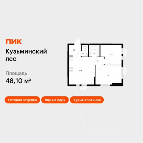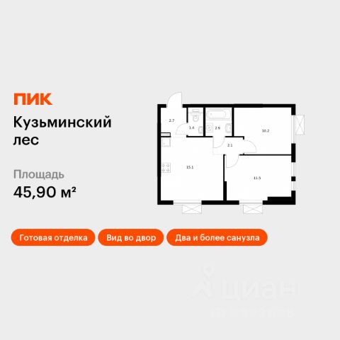 Продаётся 2-комн. квартира площадью 46 кв.м на 11 этаже 25 этажного дома (Корпус 10, Секция 1) проекта ПИК Кузьминский лес. Светлый просторный подъезд на уровне земли, функциональная планировка, большие окна, c отделкой. Жилой квартал "Кузьминский лес" находится в Московской области, в городе Котельники. Отсюда за 18 минут можно дойти до метро "Котельники", а за 5 минут — доехать на машине до МКАД. В проекте — жилые дома с уютными дворами, школа, детский сад, подземные и гостевые паркинги. Вокруг — развитый район с детскими садами, школами и поликлиниками. Отдохнуть от городской жизни можно в Кузьминском парке и усадьбе "Белая Дача", которые совсем недалеко от "Кузьминского леса". Артикул 582311 (Застройщик АО "Компания АТОЛ")